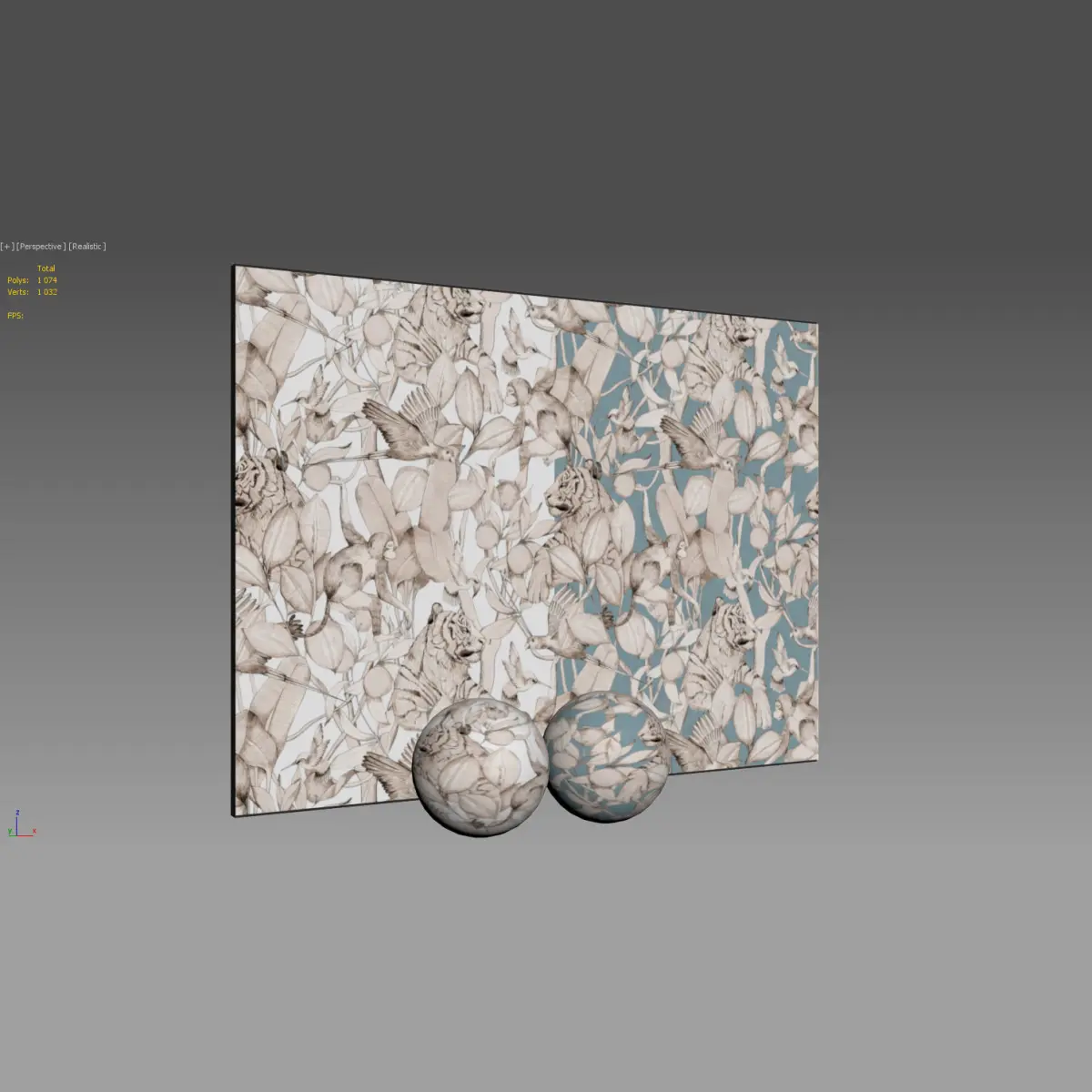 The file contains a wall and 2 materials on the spheres.