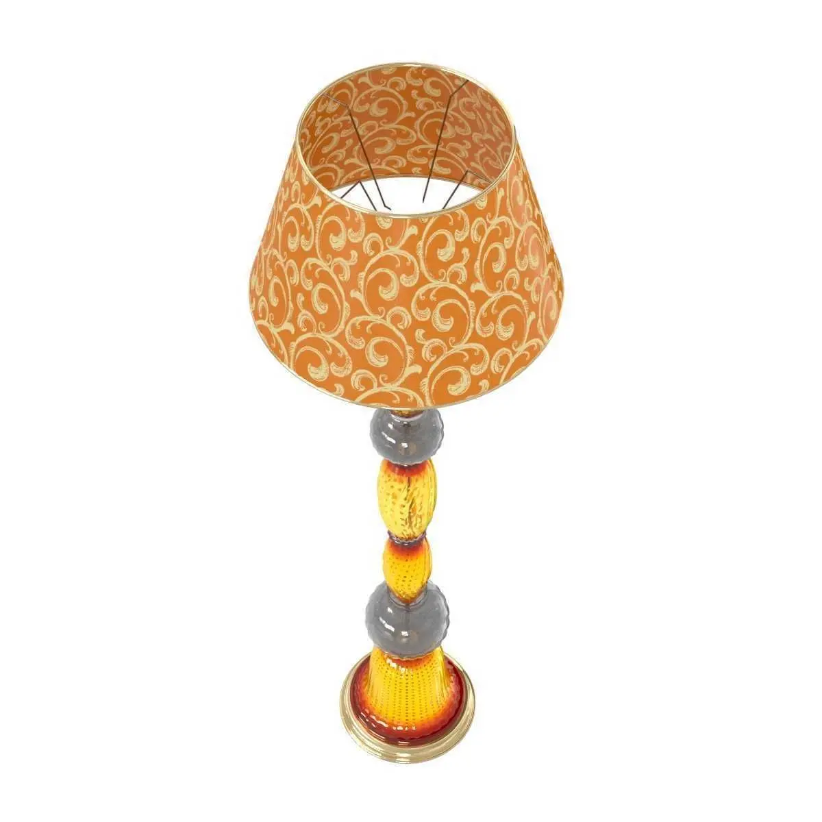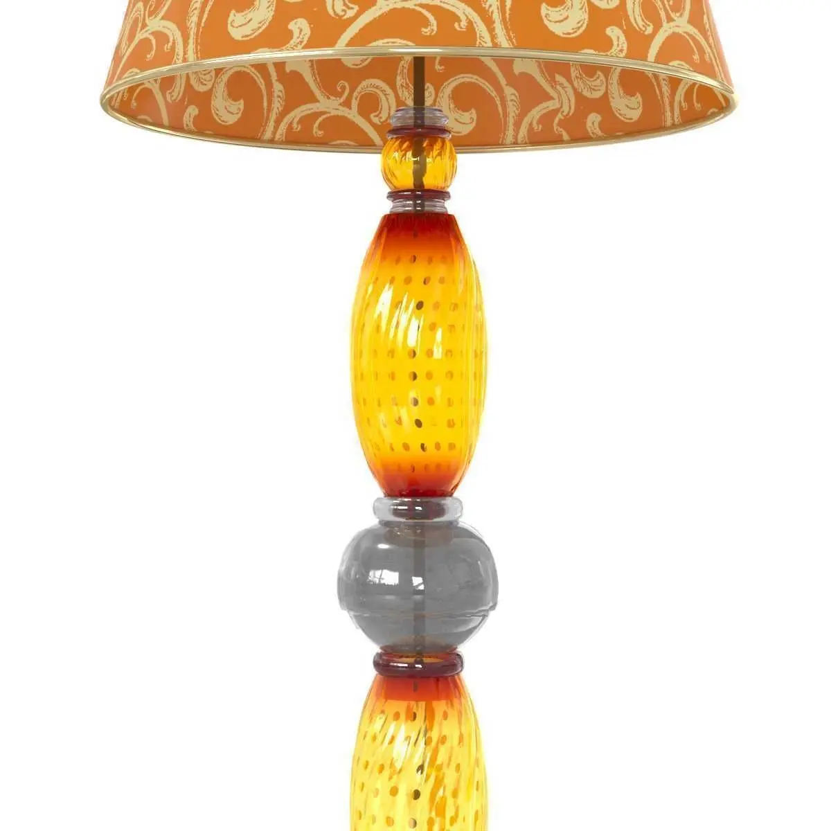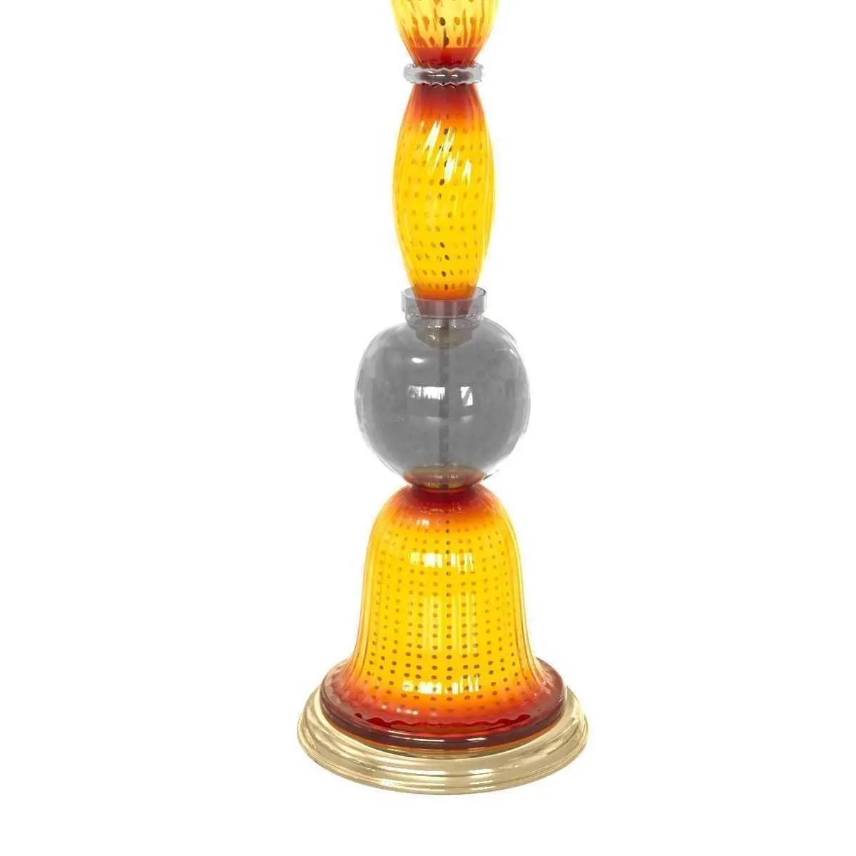 Materials used: Murano glass amber crystal gold, metal Area of application: Only for use in closed roomsDimensionsHeight: 185 cm, diameter: 55 cm, weight: 25 kgBulb detailsNumber of bulbs: 1Lamp type: LED socket: E27Power consumption: 60 wattsEnergy efficiency class: A ++ to E bulbs included: noglod glass, metal, grey smoke glass, ribbed glass, floral lampshade decor, orange beige warm colors, classic style,