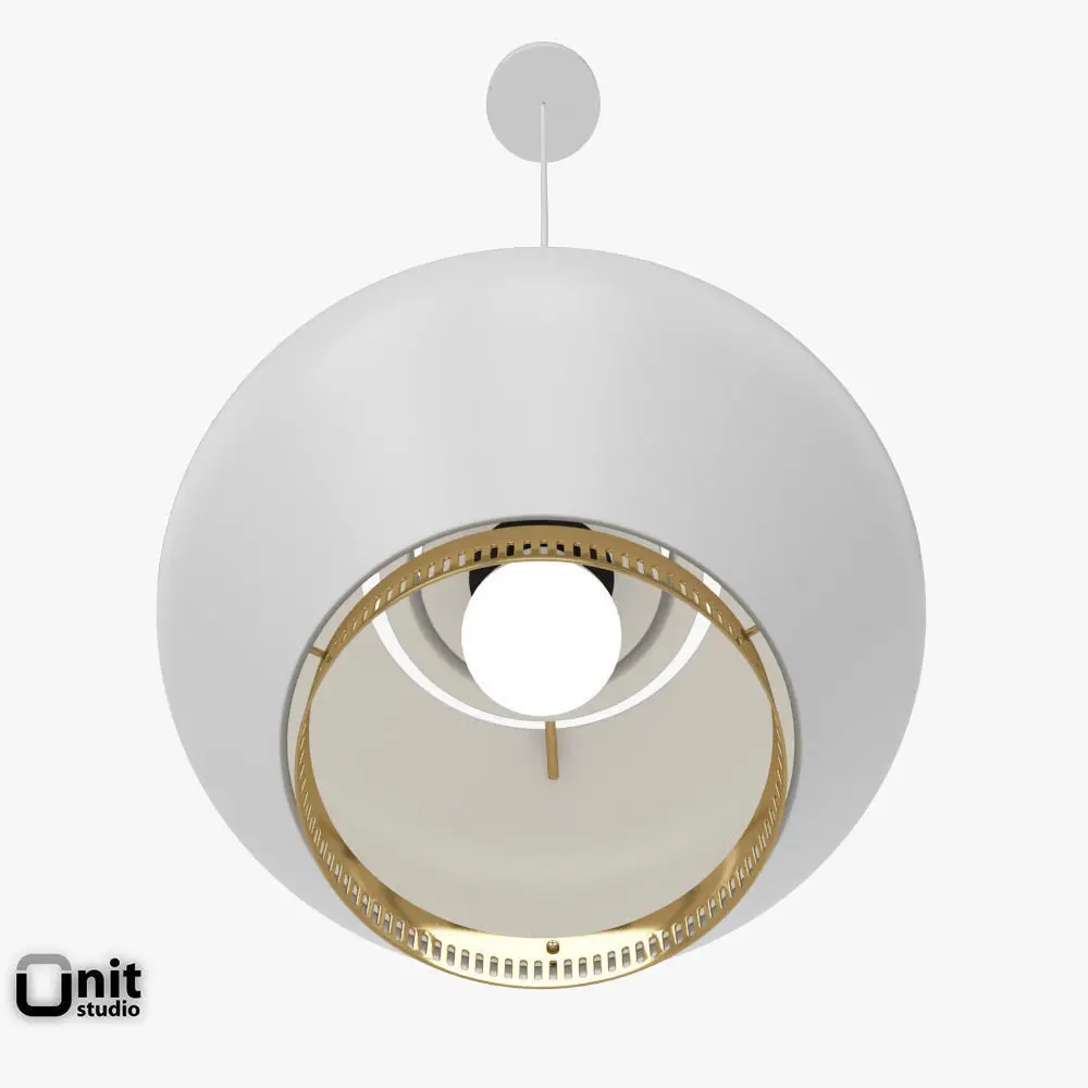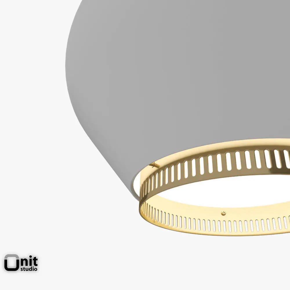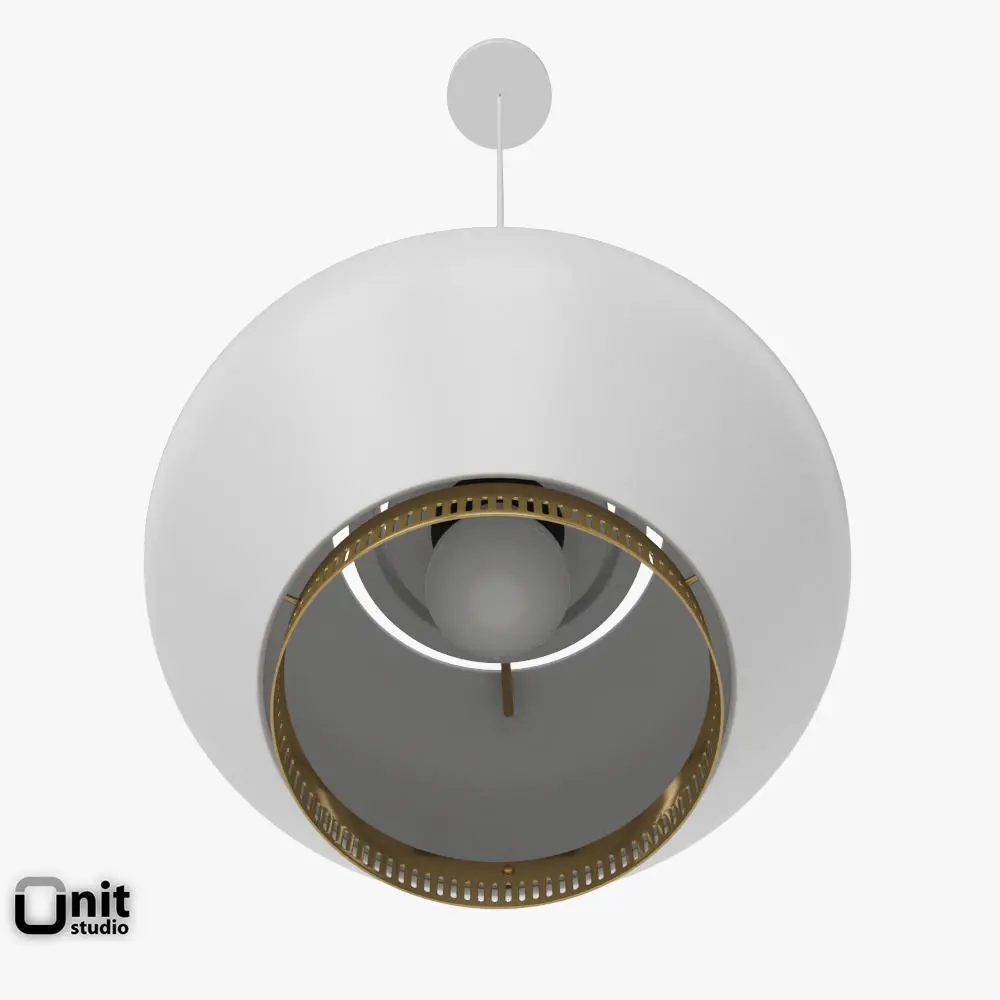 Artek pendat lamp A333, white painted steel shade, brass plated steel.Design by Alvar Aalto
