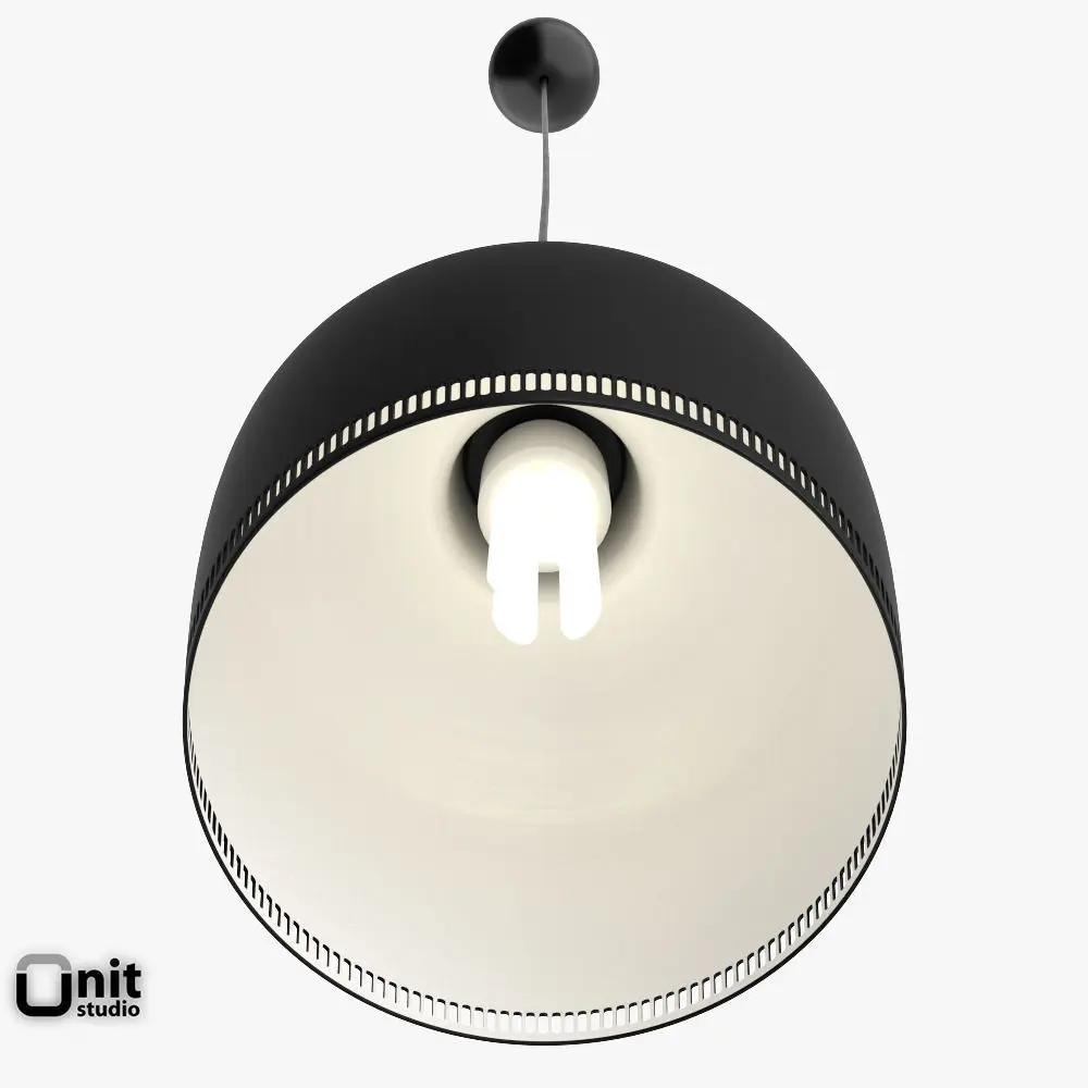 Artek bell-shaped pendat lamp A330S, crafted out of a single piece of metal. Design by Alvar Aalto