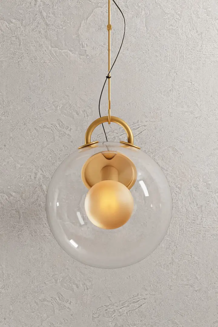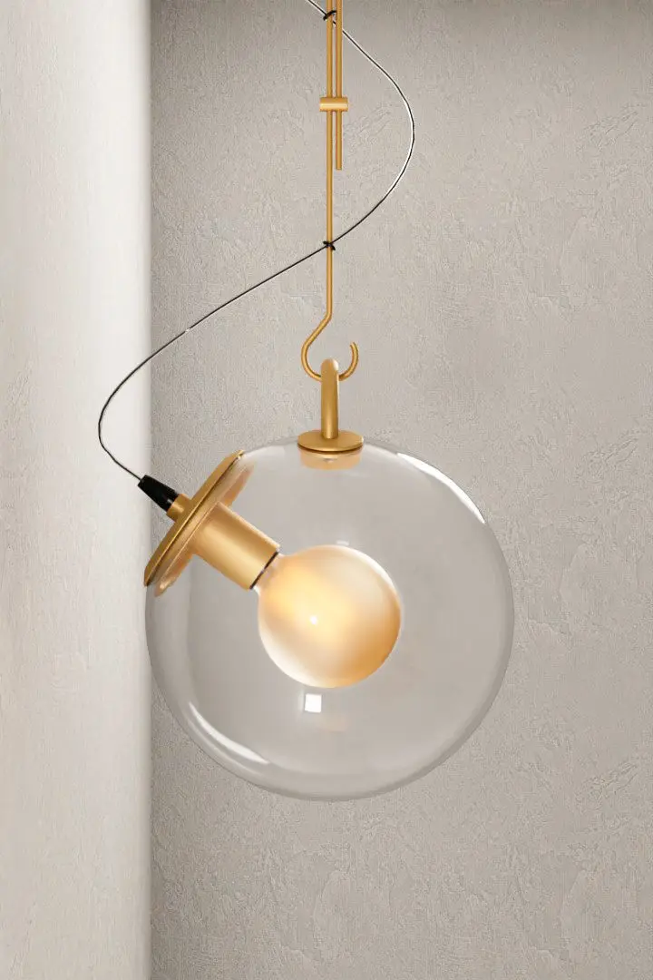 A hand-blown glass globe of light on a base and stem of polished chrome. Transparent yet created a softly diffused, dimmable light. A design statement, the Miconos fixture is designed to complement either modern or more traditional interiors. Its naked design perfected with polished precision makes it a conversation piece of contemporary art.