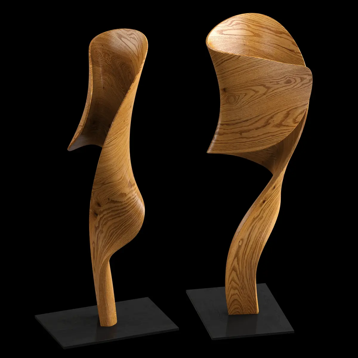 The Hissa Sculpture is classic inspiration meets organic materials—natural teak wood is carved into a twisted form, unveiling a shape that reminds us of an old-fashioned gramophoneA blackened base offers a complementary contrast to rustic constructionHandcrafted of wood and teak wood