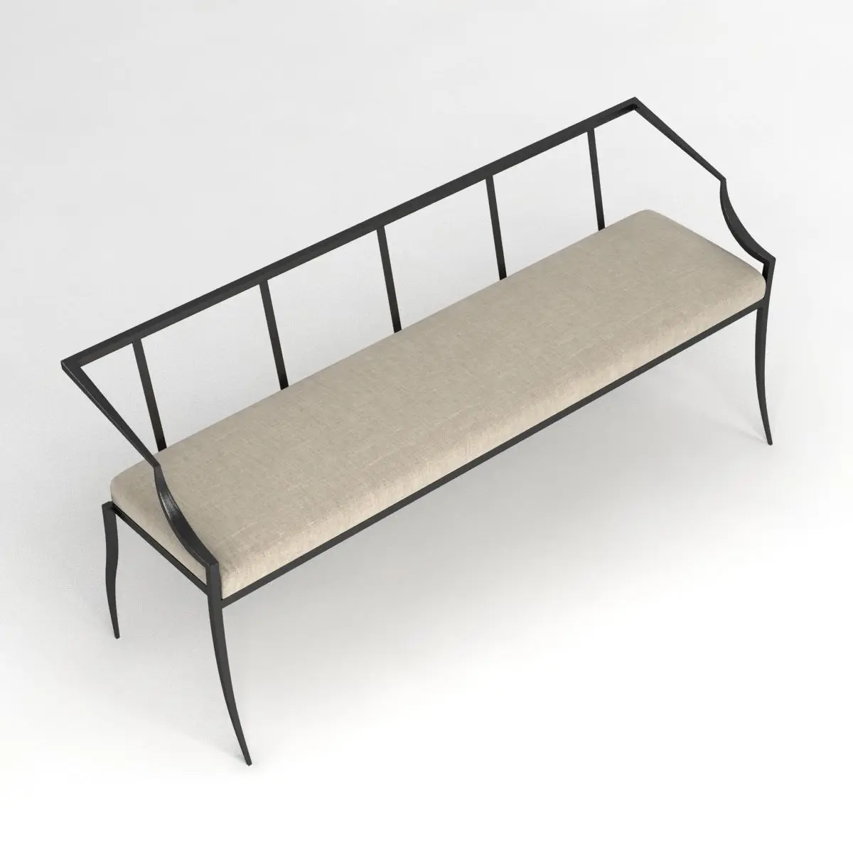 Arteriors lexi benchA black iron frame grounds the feminine form on this lovely bench with a natural linen cushion. Place in anentryway for instant sophistication. Finish may vary.Primary Material: IronMaterial 1: LinenDIMENSIONClearance: 15inOverall Foot Print Dimensions: 60x21Overall Dimension D: 21inOverall Dimension H: 27inOverall Dimension W: 60inChair Foam Material: Poly FillSeat Back H: 11.5in