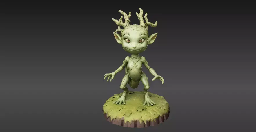 A charming Articulated Forest Sprite — a small, poseable collectible designed for both 3D printing and game use. This original creature features leaf patterned armor, vine antlers, and print-in-place joints that allow movement straight off the printer. Includes STL, OBJ, and FBX files with low-poly and high-poly LODs. Ideal for tabletop displays, desk decor, or as a cute in-game asset.