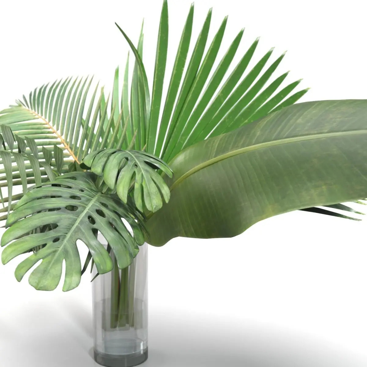 Artificial Faux And Plam Leaf In Vase PBR 3D model