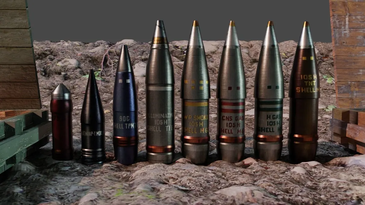 artillery ammunition** - 8 types of shells**