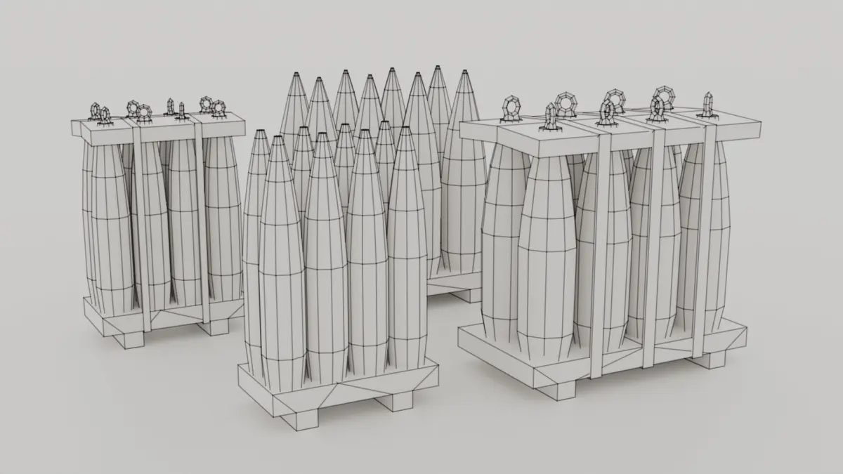 Artillery shell cratesThis is a model of an ammo crate for transporting 120 mm M859 APFSDS-T cartridges, modelled in 3ds max 2018.