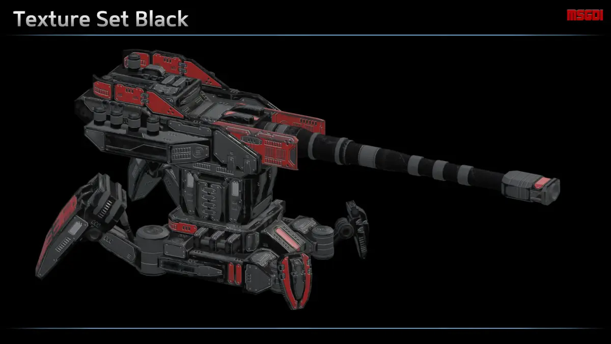 - Base, turret body and barrel are separate meshes - Pivot points of base and turret are centered. Pivot point of the barrel mount is at the join where it rotates up and down - Ammunition included - 7 different texture sets - PBR textures for specular and metalness workflow - Texture size is 1024 - Tris count ca. 1300