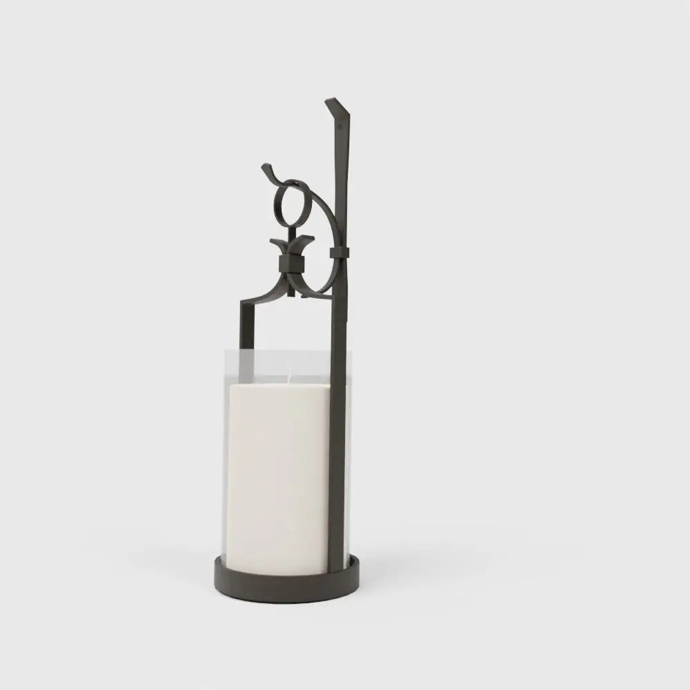 Design Style: Vintage-inspired wall-mounted candleholder with a handcrafted iron bracket, scrollwork details, and a shallow glass or ceramic candle dish.