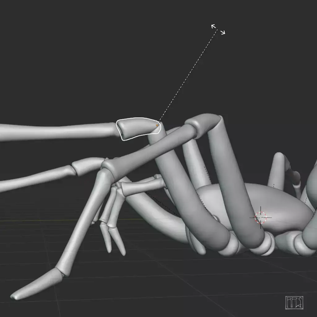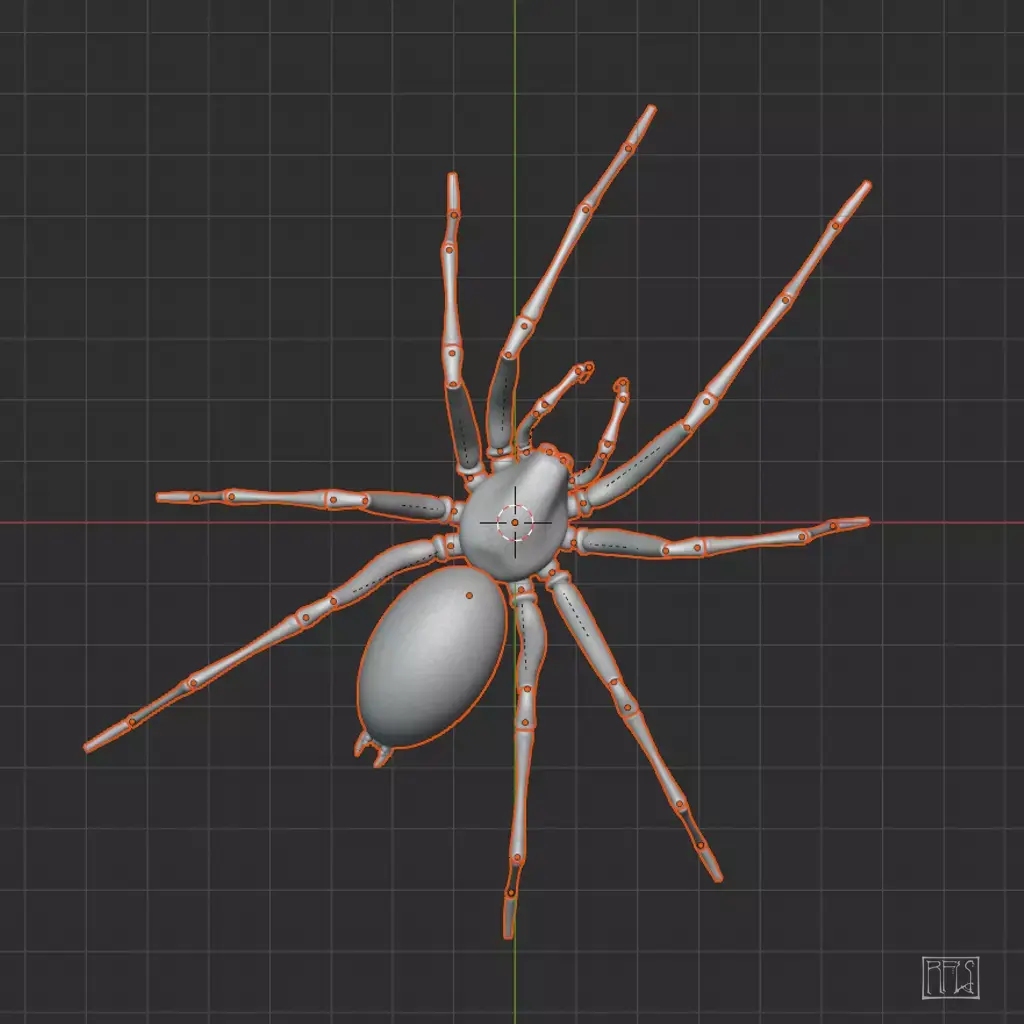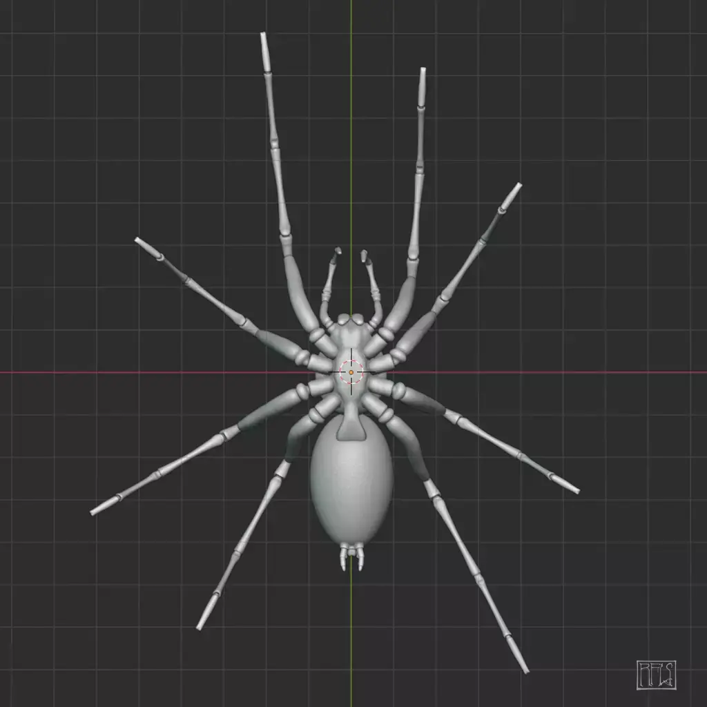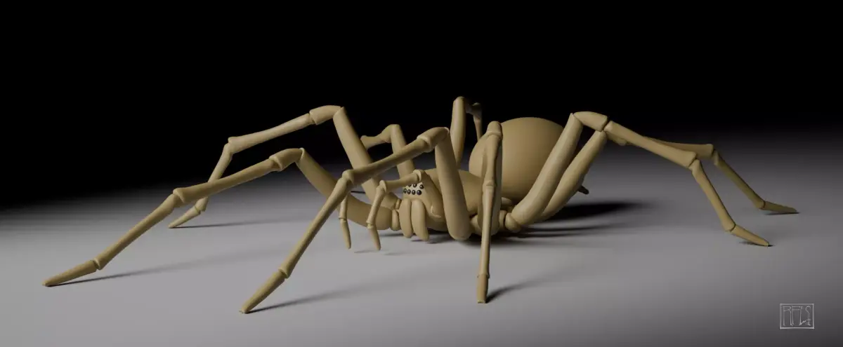 This model uses a simple parented rig, with many of the joints constrained to a single rotational axis to make posing easier. As you may wish to search for reference images to achieve a more natural pose, the model is based loosely on a European house spider