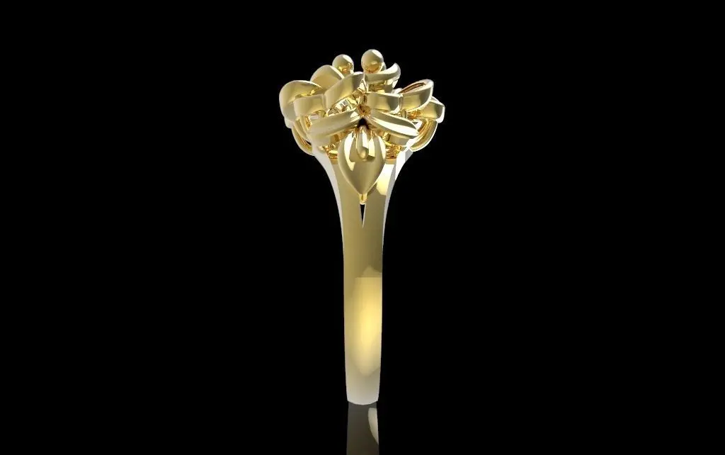 This 3D model showcases an artistic floral ring for women, designed with multiple layered petals in a realistic flower form. The elegant 3D flower motif highlights fine craftsmanship and brings a natural, organic beauty to the jewelry piece. This design is ideal for artistic jewelry collections, offering a unique alternative to traditional gemstone-centered rings.