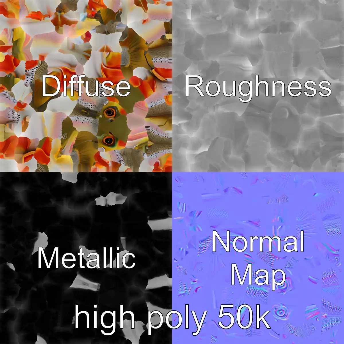 Each model has 3 levels of detail: low-poly, middle-poly, and high-poly, which allows for the use of this model in production rendering (such as 3ds Max, Maya, Cinema4D, Blender, Vray/Corona/Cycles and all others), game engines (Unity and Unreal compatible), and interactive presentations, providing a choice of detail based on the LOD System principle. This Artistic Cutthroat Trout is perfect for educational showcases, nature documentaries, and aquatic simulation games. The model features vivid orange-red throat markings with a slender physique, unique jaw structure, and distinct scale patterns alongside rich natural coloring. The model's textures are PBR, Diffuse, NormalMap, and reflection/roughness/metallic, which are suitable for any modern rendering engine. All models are accurately unwrapped and have no overlapping UVs. All textures are 4096*4096 in size. If you liked the model, please like and leave a comment.