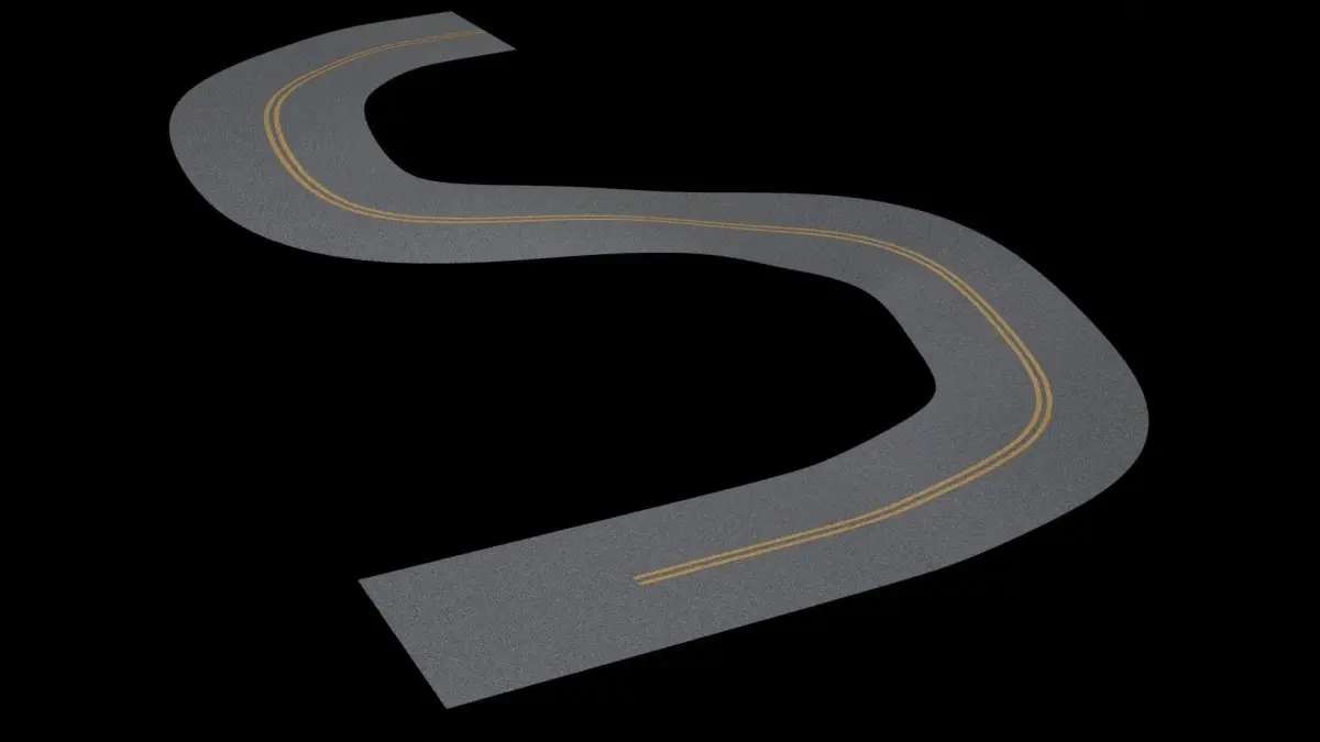 Only a straight path was attempted in the video. In this trial, procedural material was tested on a curved and uphill road.