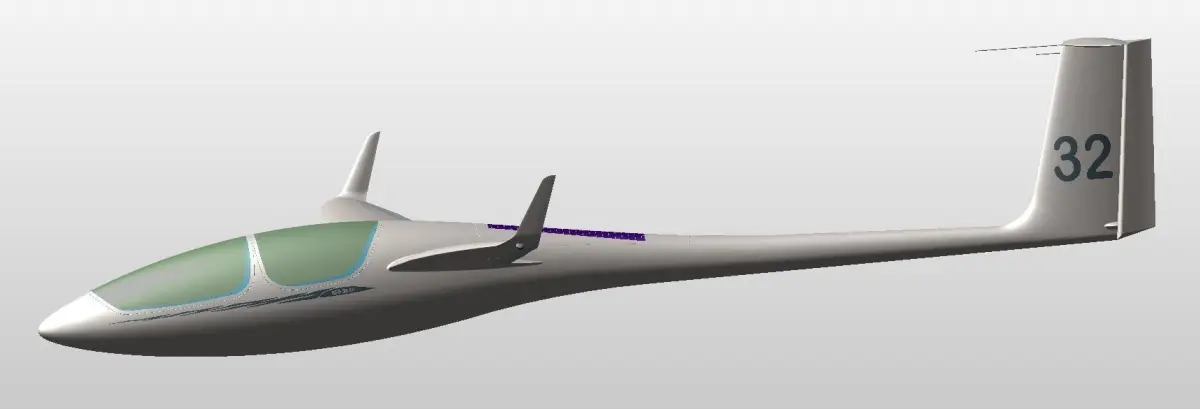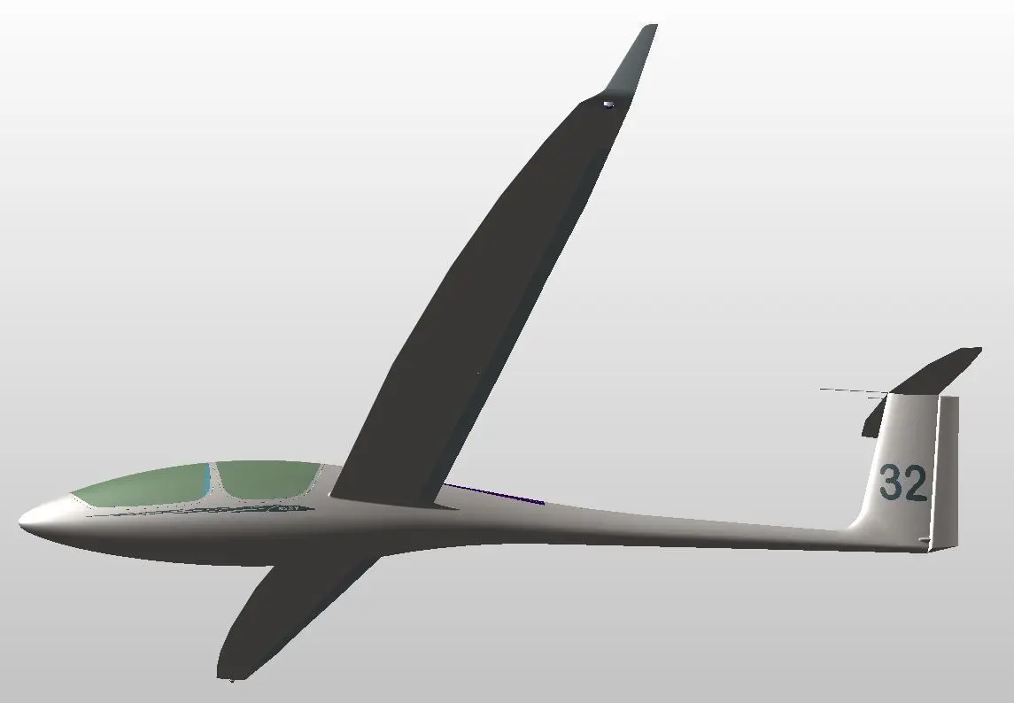This ASG32 Mi As a follow-up on my ASH30 Mi model:This (SAT&STEP 100MB) CAD model of the ASH32Mi sailplane (rendered in Blender), focuses on exterior aerodynamic surfaces. Mechanisms is excluded. As I do not have the correct wing profiles, I made an educated guess. Hi and lower Poly is provided. The wing profile tests is shown. Please visit my other planes like the ASH30 Mi & Avanti too. If you own one, have your own plane's numbering put on as an extra.