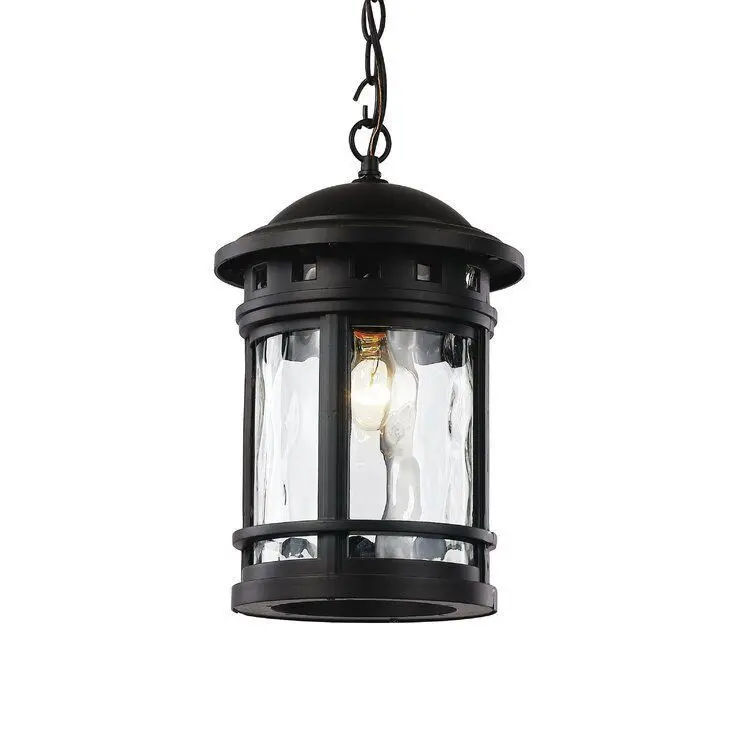 - Our 1-Light Outdoor Hanging Lantern is perfect for highlighting a home's Outdoor decoration. The striking design is ideal to light an Outdoor gathering area, without occupying any usable space. Offering a distinguished look, while providing light to your space, this Outdoor Pendant Fixture blends a durable Metal frame with Clear Water Glass, showcasing a unique update to a Nautical design. The Water Glass adds beautiful, soft reflections to the areas it shines Light on. A single matching hanging chain and ceiling canopy are included. All installation material is included with this outdoor pendant light. There are multiple other light fixtures in this collection to choose from and use throughout your yard.