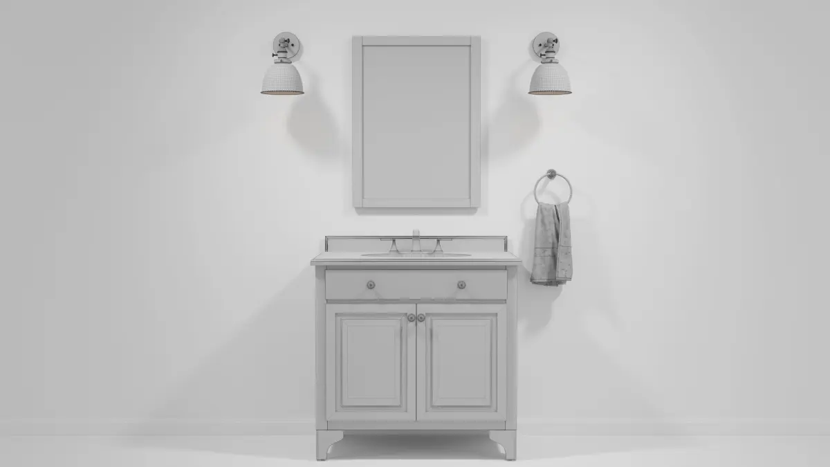 This 3d model of OVE Ashmore AB 36 THD vanity has a fully textured, detailed design that allows for close-up realistic renders.