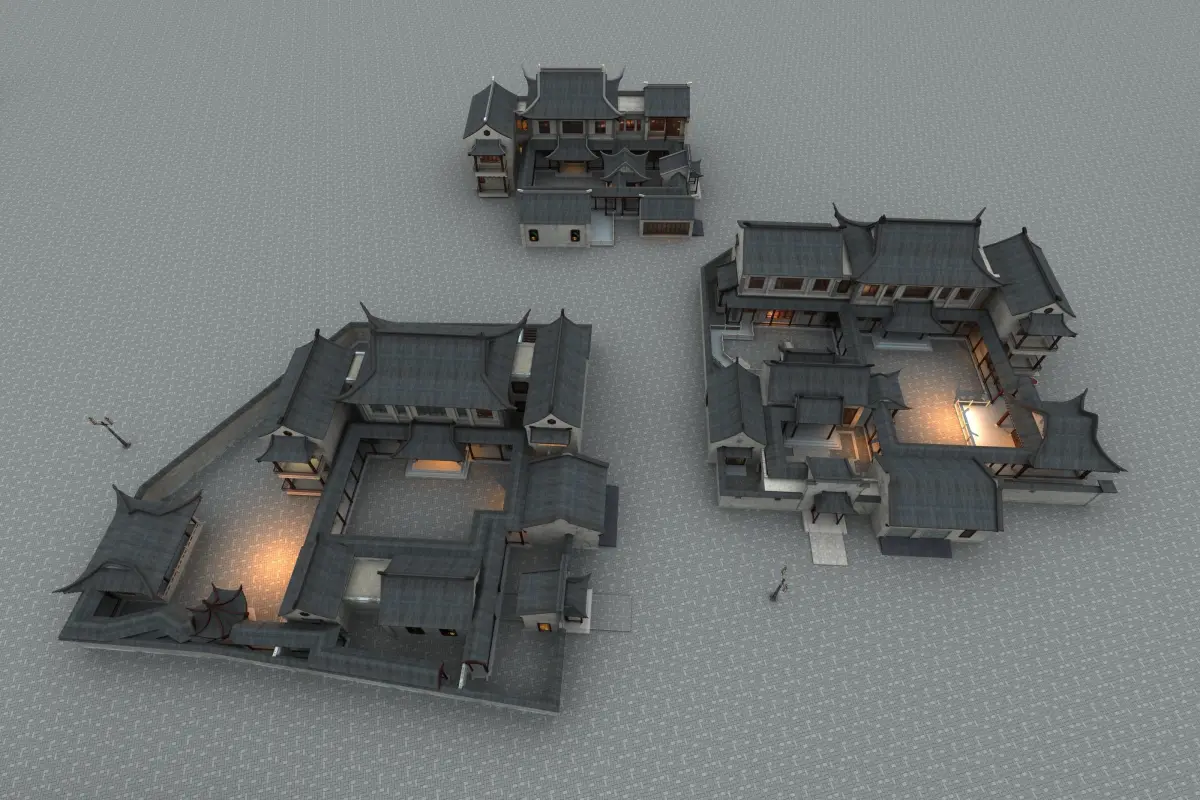 HomeCatalogAsia Ancient buildings courtyard Low-poly 3D model