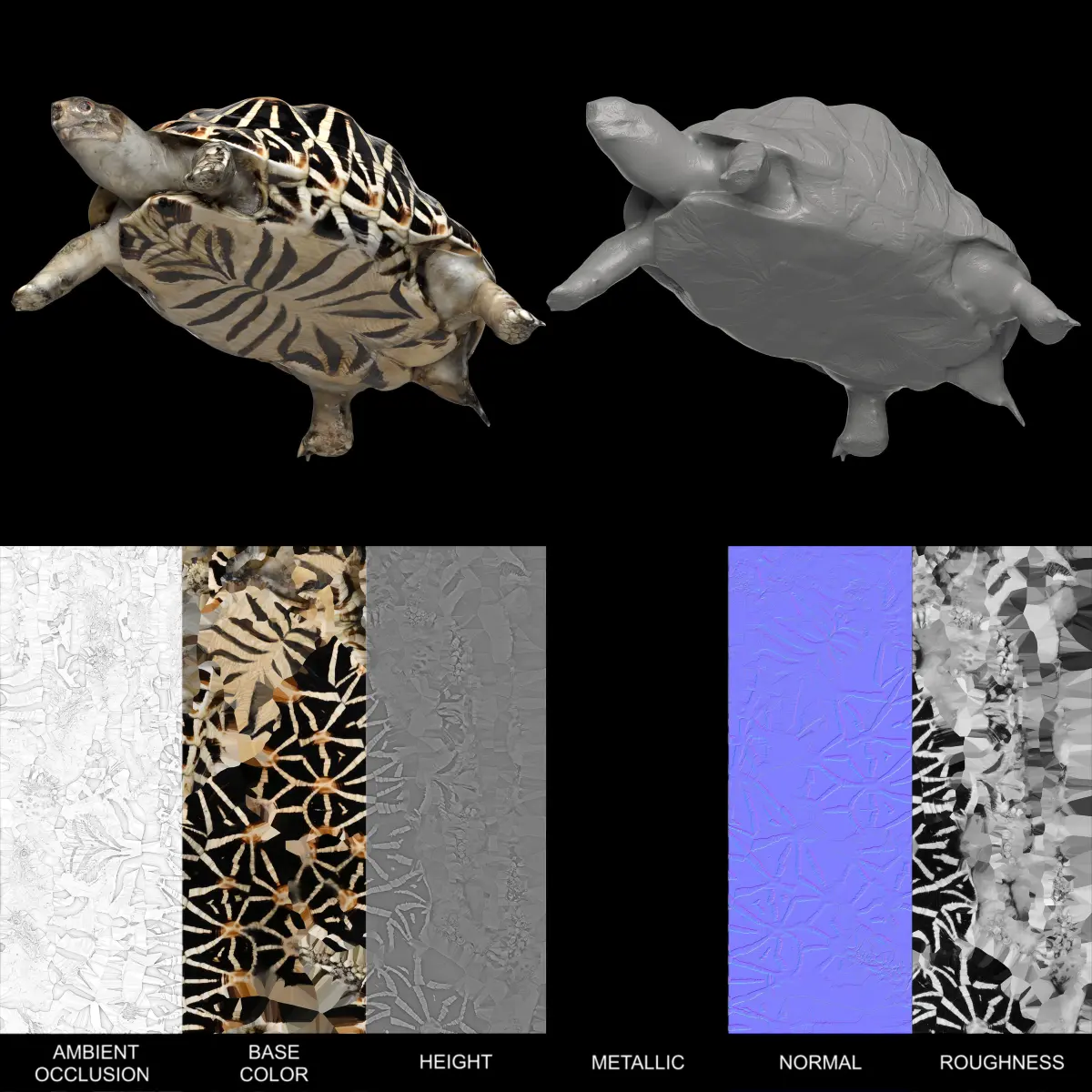 - Indian Star Tortoise model total triangles: Tri Count 565k.