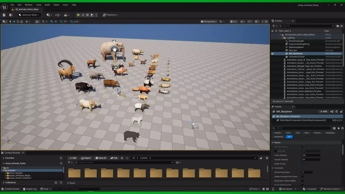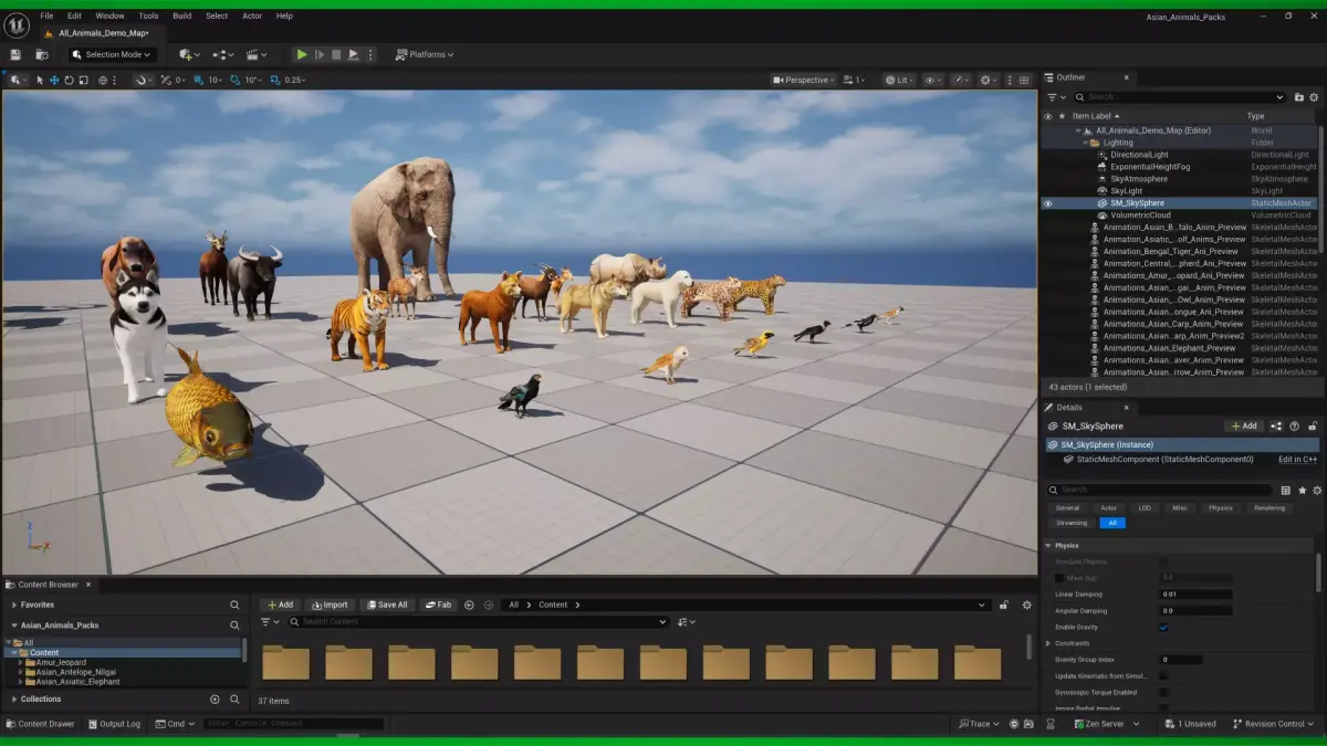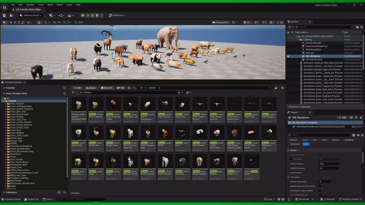 - Features- 34 Unique Asian Species – from apex predators like the Bengal Tiger and Snow Leopard to iconic wildlife like the Giant Panda, Asian Elephant, and Indian Rhinoceros.- Game-Ready & Animated – clean topology, optimized textures, and looping animations included.- Wide Variety – mammals, birds, and fish covering forests, mountains, rivers, and grasslands of Asia.- Verified in Unreal Engine – tested and packaged for seamless integration.