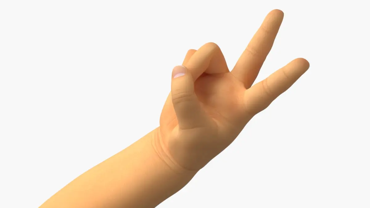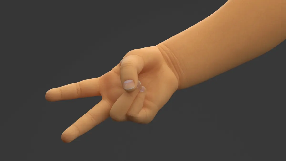 Asian Baby Hand Victory Gesture is a three-dimensional model of hand gesture depicting a young Asian child's hand forming a "V" sign, commonly associated with victory, peace, and positivity.