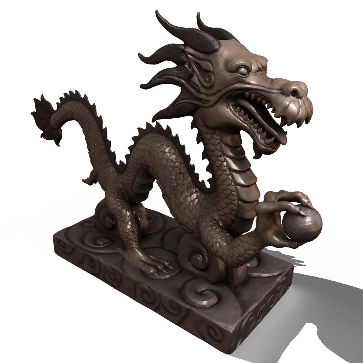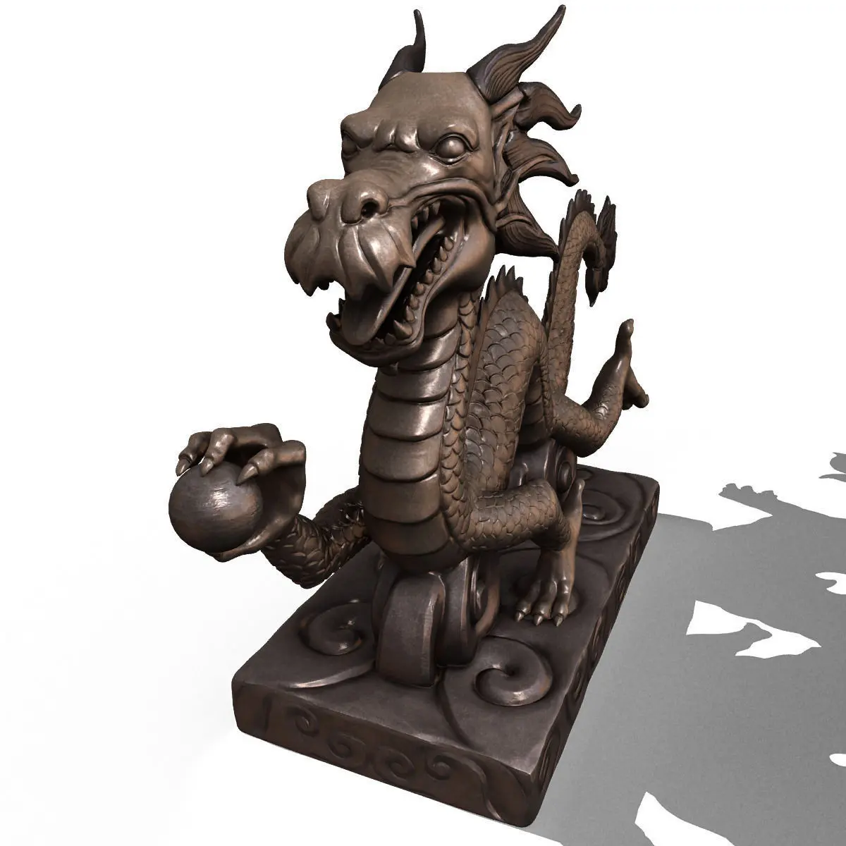 ===== Asian Chinese Dragon 3D Model =====This model was sculpted in Zbrush with a great amount of details based of real world references of Asian dragon statues and ornaments. The dragon, sphere, and base(pedestal) are each their own objects, allowing you more versatility in how you want to use this prop.