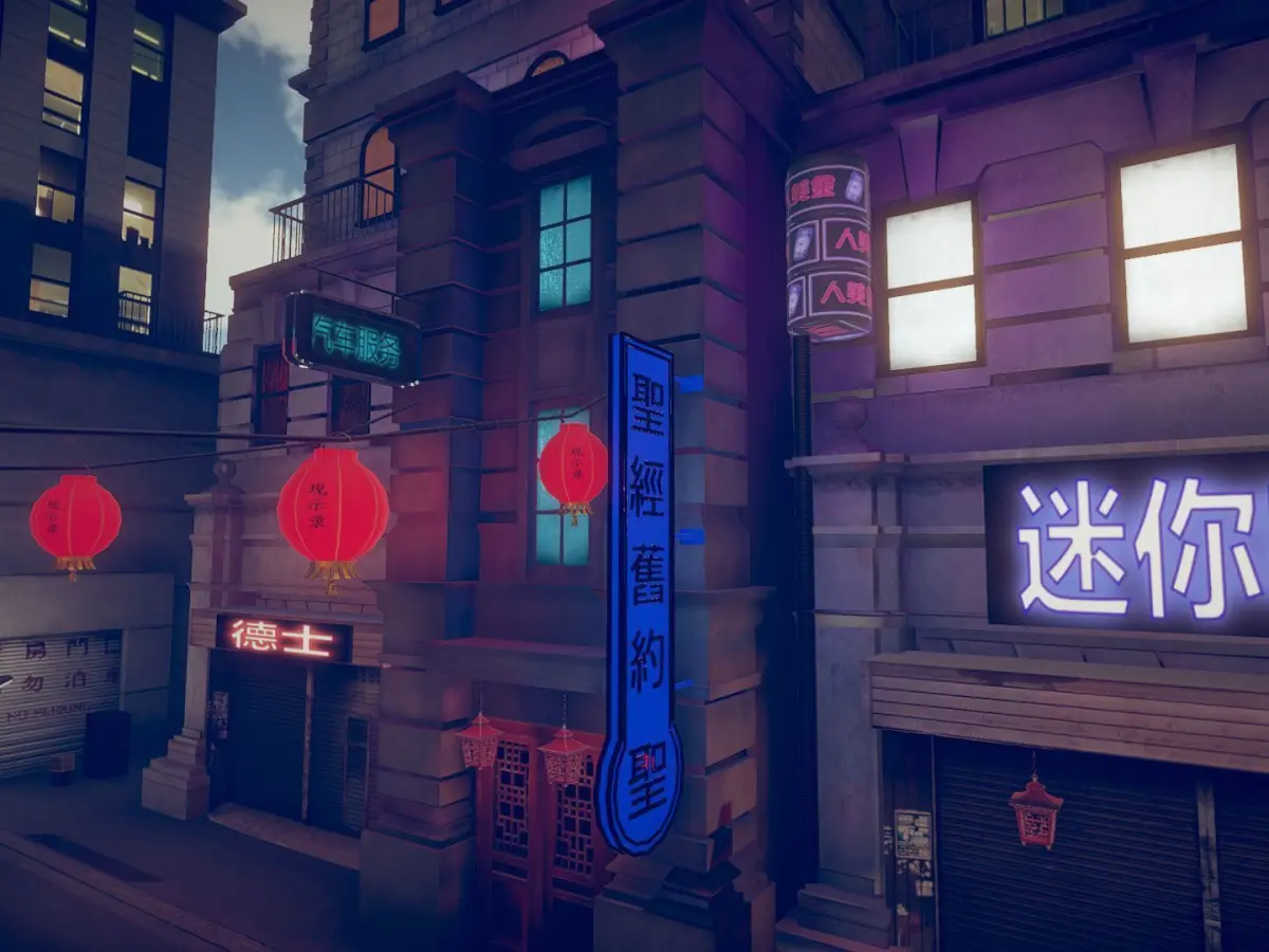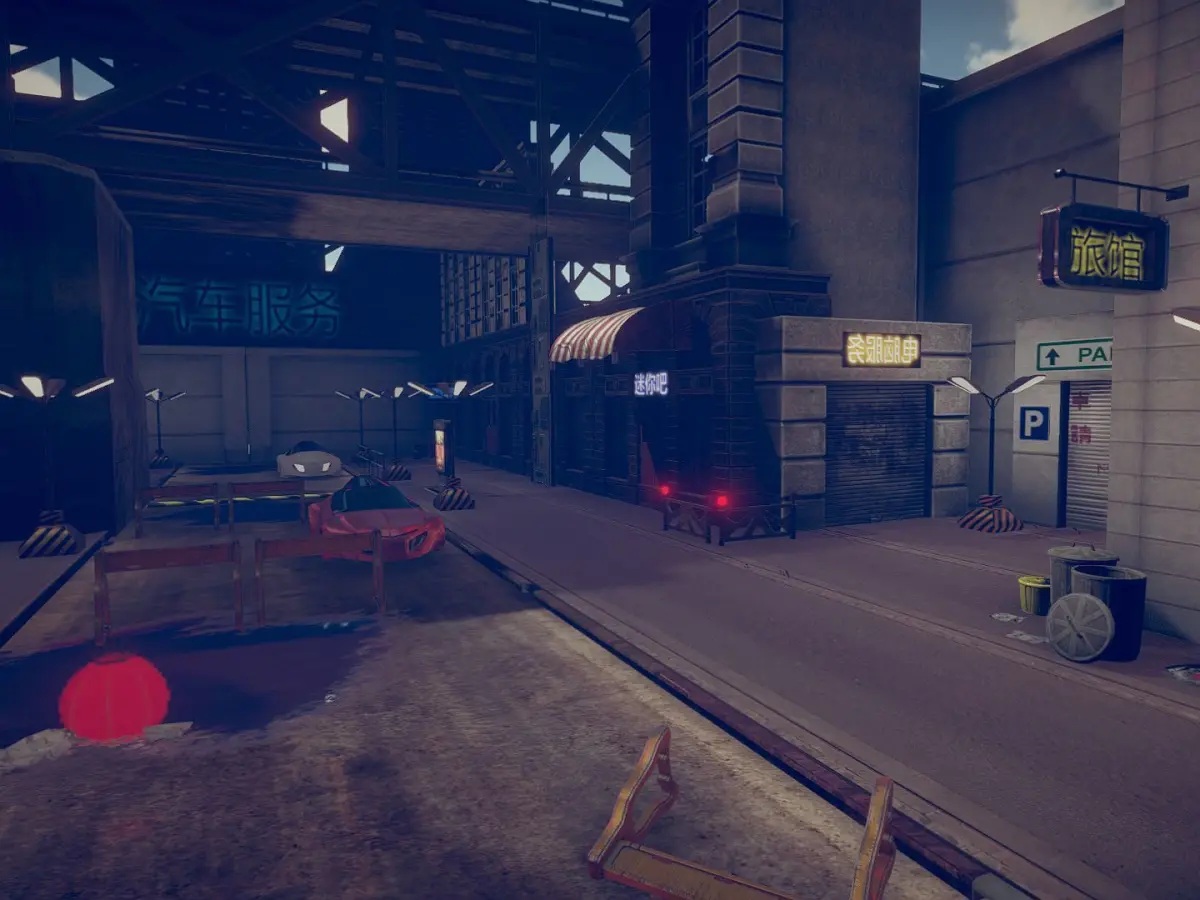 The pack includes models like street props, buildings, sci-fi cars, roads, barriers, street lamps, lampions, road props, doors, neon signs, bins and others. 36 sci-fi car models, 10 building models (only exterior)