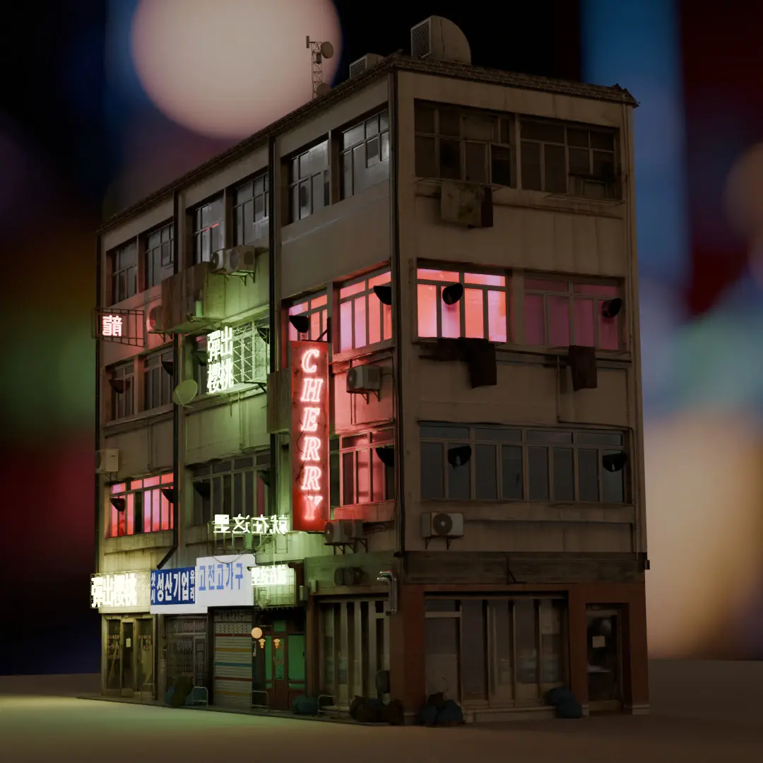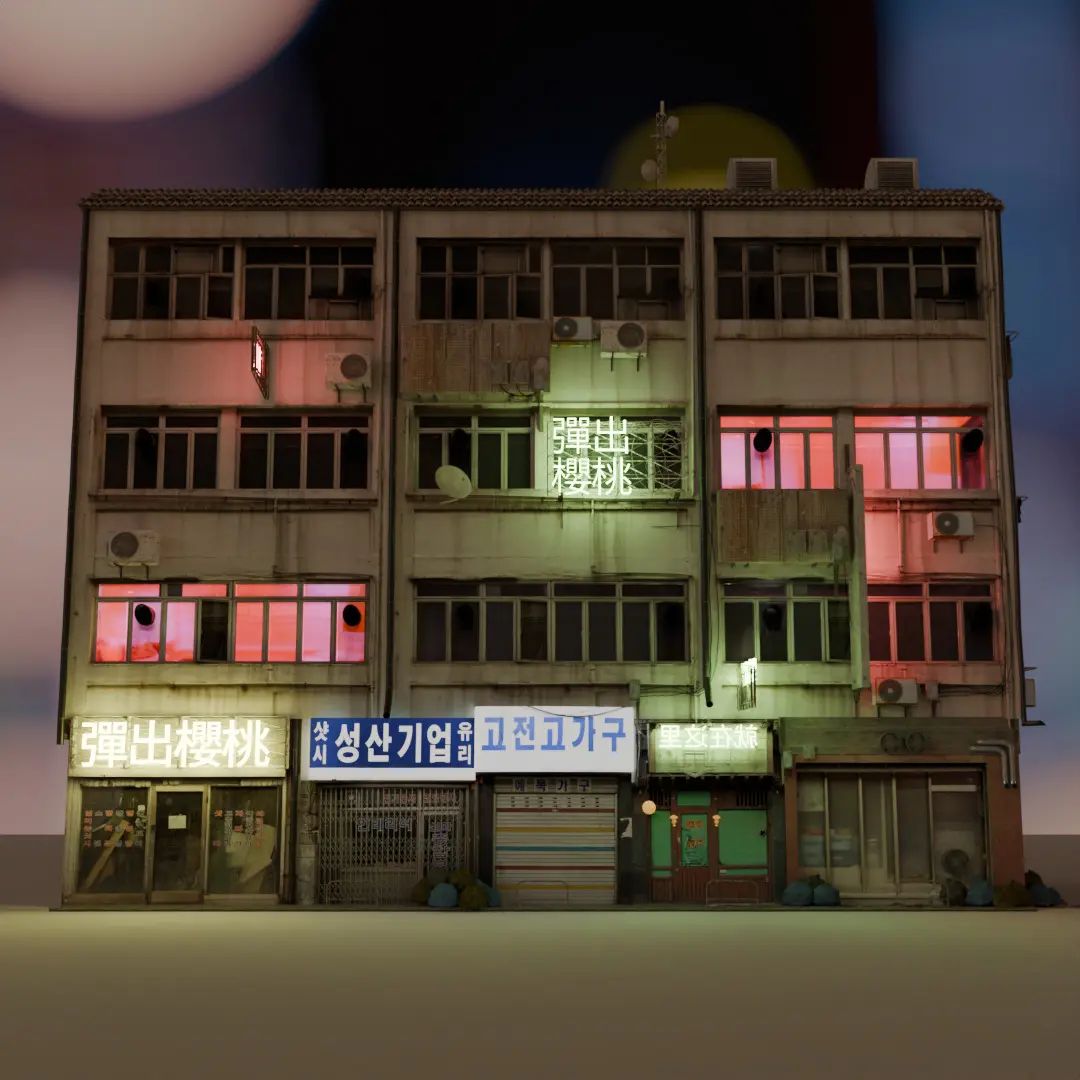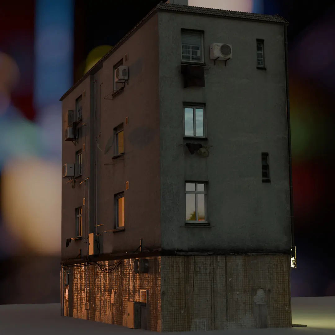 I wanted to create the infamous Hon Kong towerblocks. Somewhat inspired by Ghost in the Shell, so it's either completely realistic nor completely cyberpunk.I've had a lot of fun doing the house and will probaply make some variations of the facade.