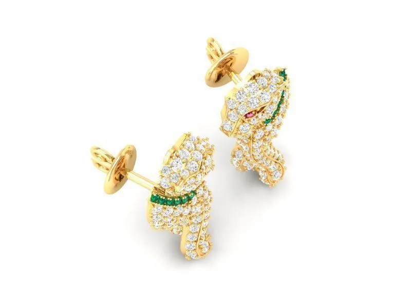 These Asian dragon luxury earrings feature a fully pavé-set surface that highlights intricate curves and strong symbolic meaning. Designed with refined proportions, the dragon form wraps elegantly into a compact stud earring shape, making the piece both eye-catching and comfortable for daily wear. The carefully arranged gemstones enhance the dimensional structure, giving the earrings a sparkling, high-jewelry appearance suitable for gold, silver, or platinum casting.