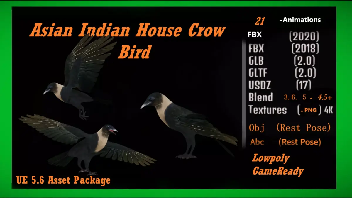 The house crow, also known as the Indian, greynecked, Ceylon or Colombo crow, is a common bird of the crow family that is of Asian origin but now found in many parts of the world, where they arrived assisted by shipping. It is between the jackdaw and the carrion crow in size but is slimmer than either..3D Asian Indian House Crow Bird Realistic Animal Model By Nyilonelycompany (nyc).Thank you.