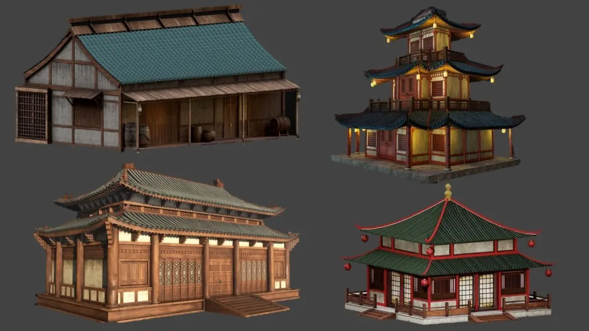 Japanese Building model Collection that can also be used as temple or residential buildings in games and other projects