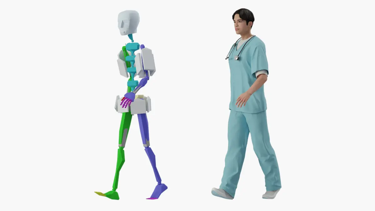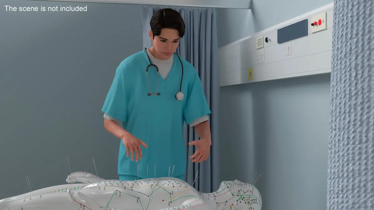 Asian Medic with Stethoscope Rigged is a three-dimensional model of a healthcare worker wearing traditional medical scrubs, commonly used in hospitals and clinics.