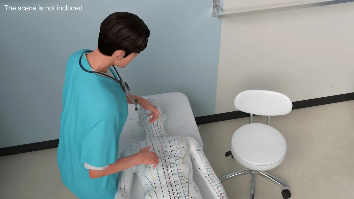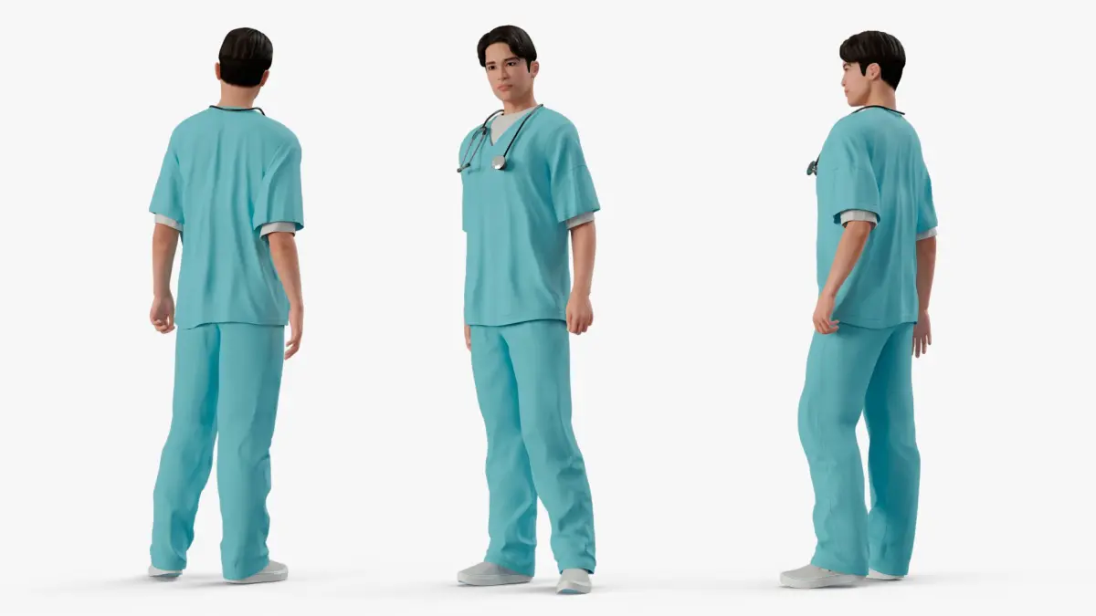 Asian Medic with Stethoscope Rigged for Maya is a three-dimensional model of a healthcare worker wearing traditional medical scrubs, commonly used in hospitals and clinics.