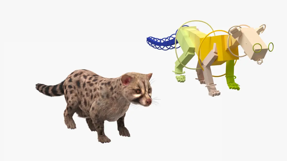 Asian Palm Civet Musang Spotted Coat Brown Fur Rigged is fully rigged and is ready to be animated. You can easily position it the way you need or animate it the way your project requires using helpers in 3D Studio Max. See the turntable to get an idea of how rigging works.