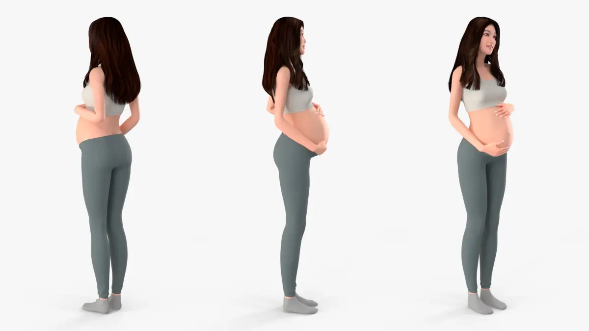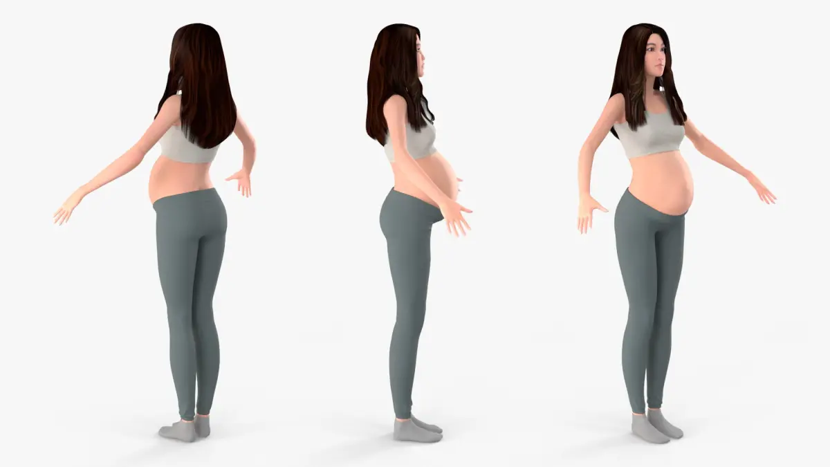 Asian Pregnant Woman Rigged for Maya is a three-dimensional model of beautiful human female figure that represents a woman character in pregnancy.