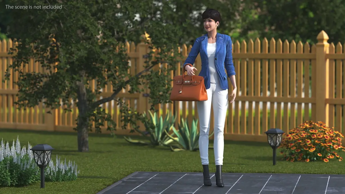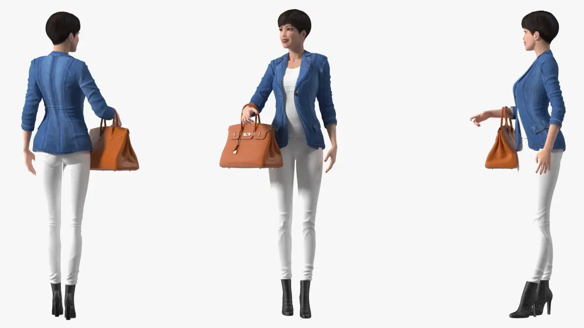 Asian Street Fashion Woman with Hermes Birkin Bag is a three-dimensional model of an Asian woman with luxury women handbag accessory, which designed to hold and carry personal items.