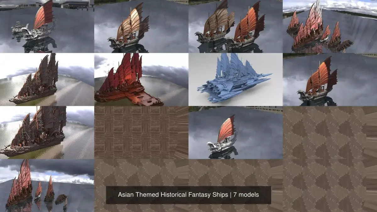 This 3D project, titled "Asian Themed Historical Fantasy Ships 3D Model Pack purchase", is an item authored by "Unknown author".
