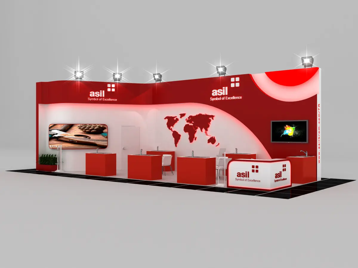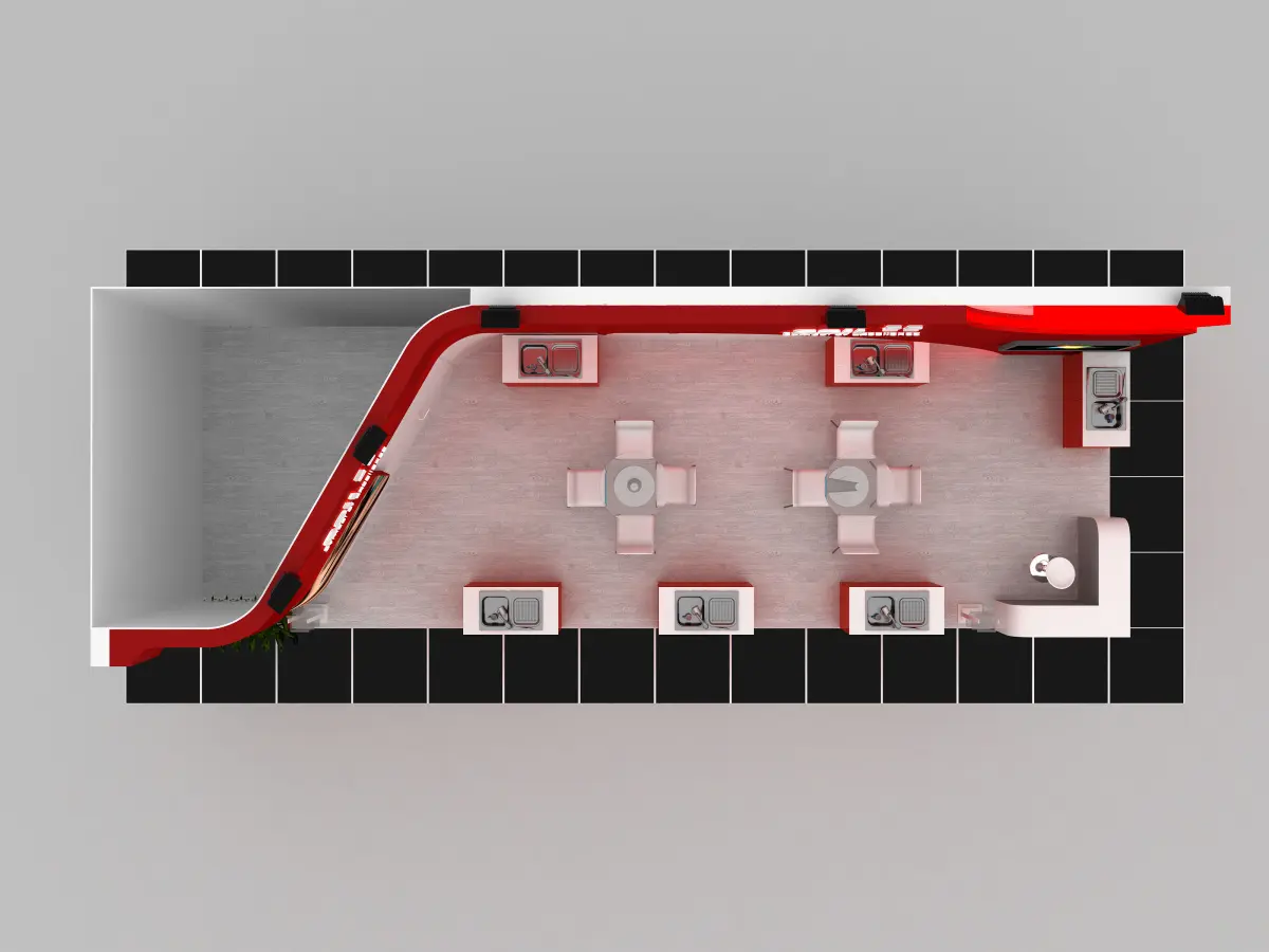 Stall Size 12 m x 4 m Height 410 cm - 3 Side open- Store- Reception table- TV