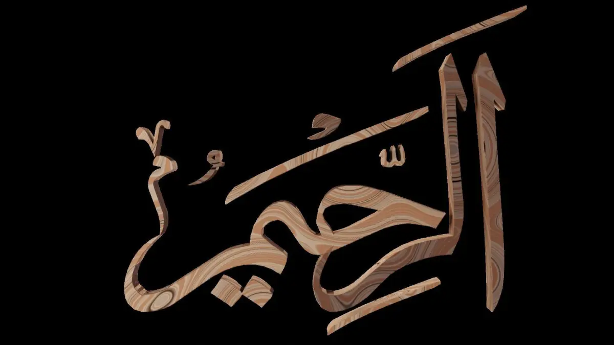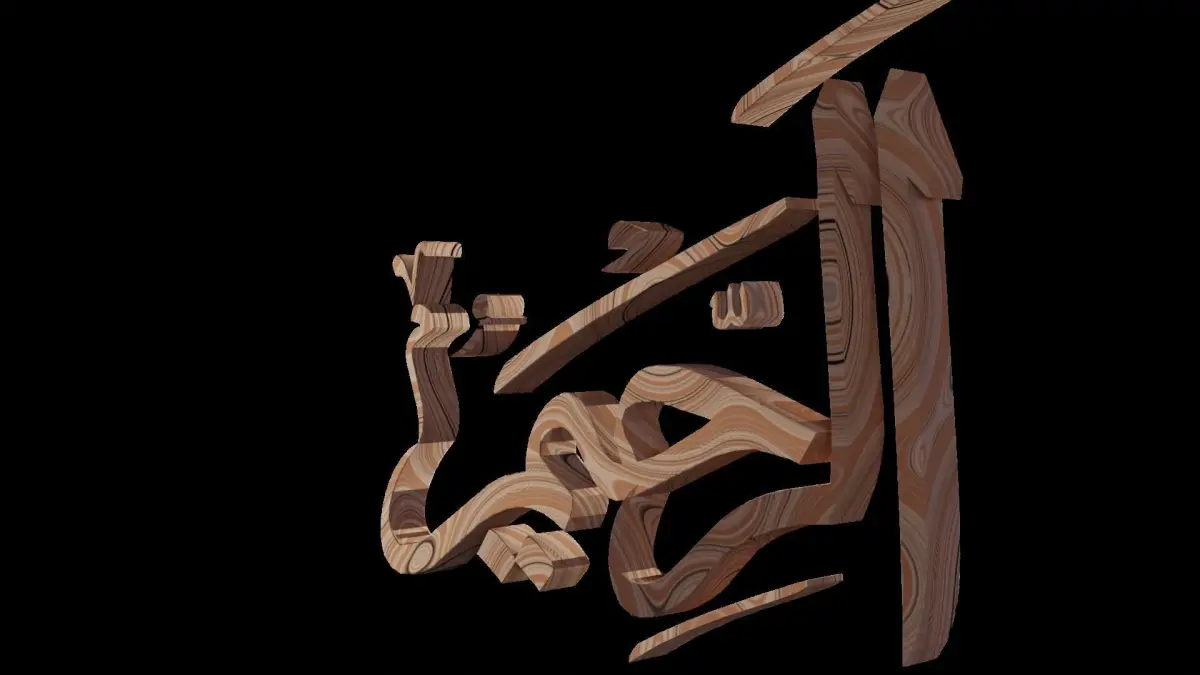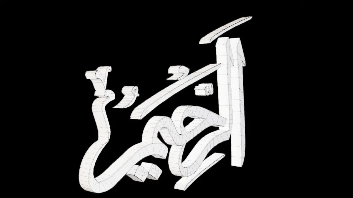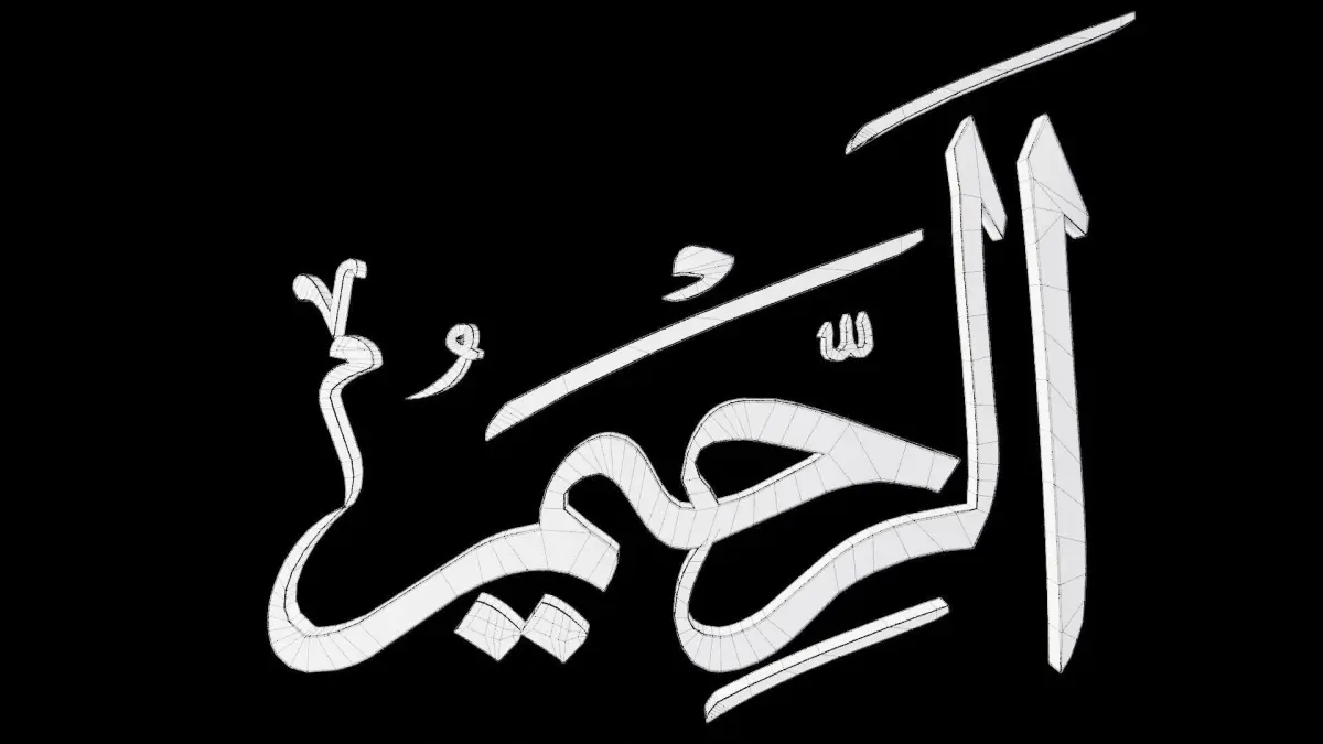 In the name of Allah the most merciful, the especially merciful.A rendering of Allah's name in Arabic, made in Blender 2.93.