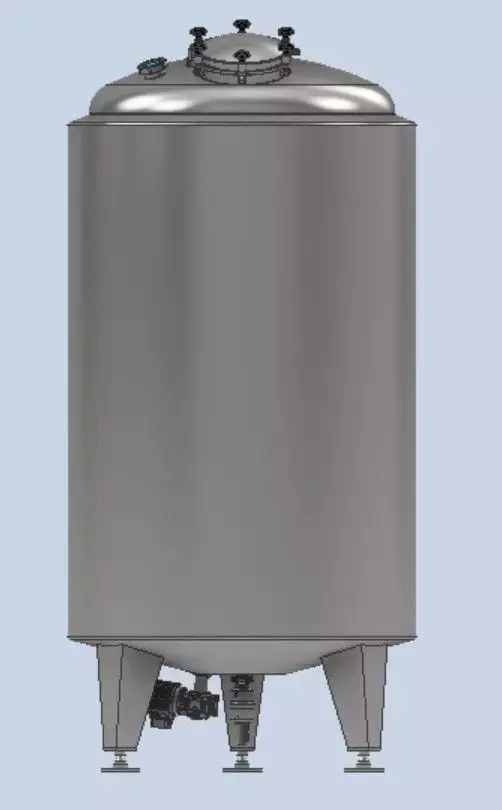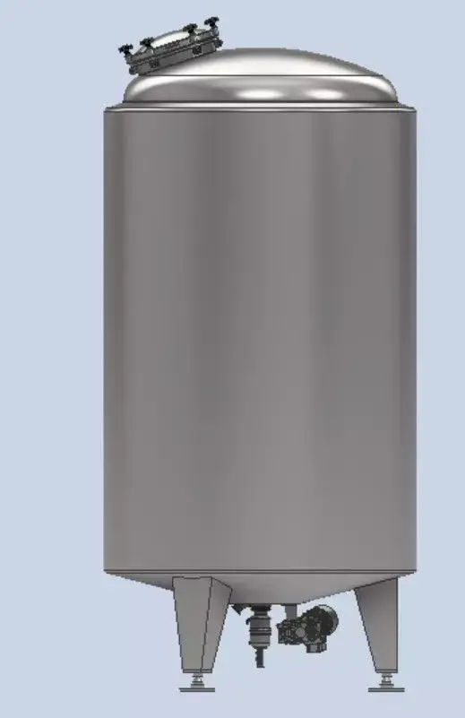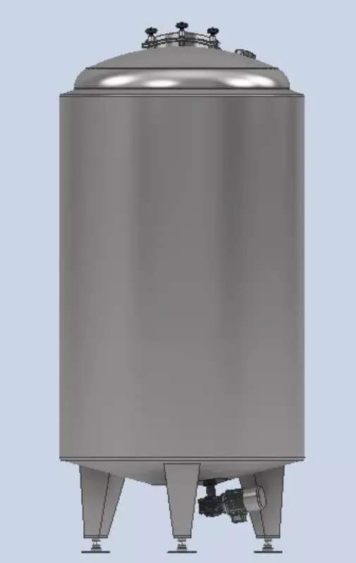 High-quality 3D model of an ASME BPE compliant sanitary pressure vessel, designed for pharmaceutical, biotechnology, and food processing industries. The model represents a vertical cylindrical vessel with a dished top head, zero dead leg bottom drain valve. This model is suitable for industrial visualization, engineering presentations, factory layout planning, simulation environments, and educational use.
