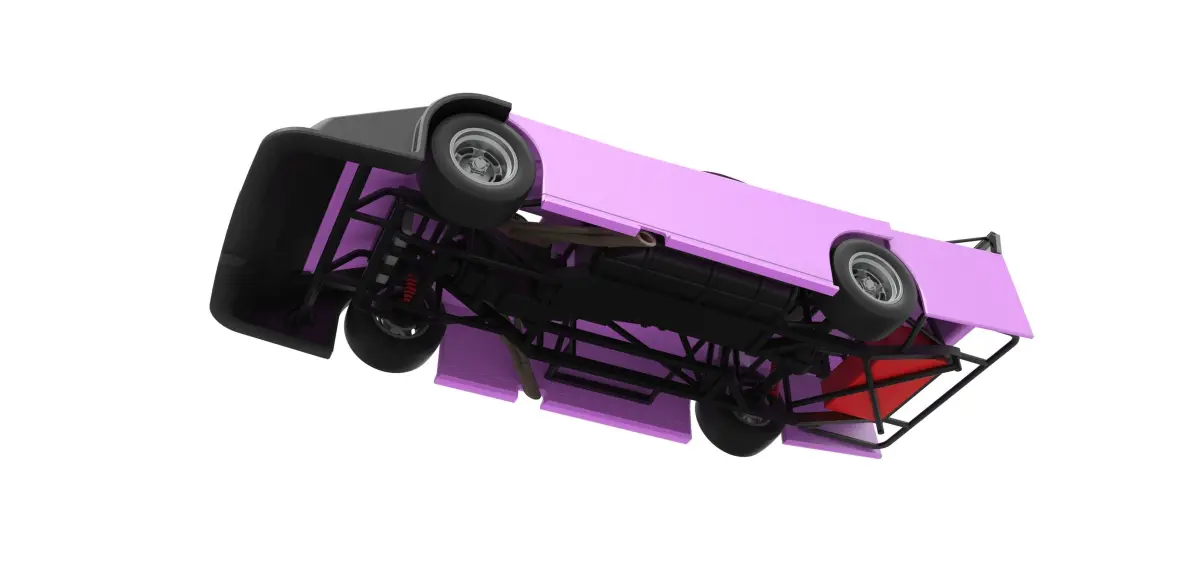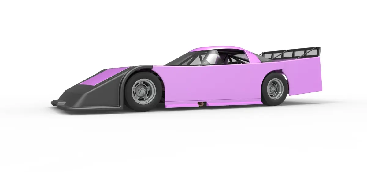 The model consists of parts: Body, Engine, Front windshield, Left exhaust pipes, Radiator, Rear spoiler frame, Rear spoiler plate, Rear spoiler rods, Rear windshield, Right exhaust pipes, Rims, Seat part 1,2, Shell part 1-3, Shifter, Steering wheel, Tank, Tires.