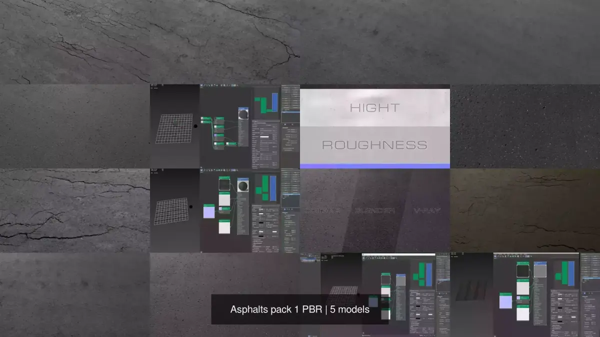 Pack of 5 Asphalts PBR materials based-scan