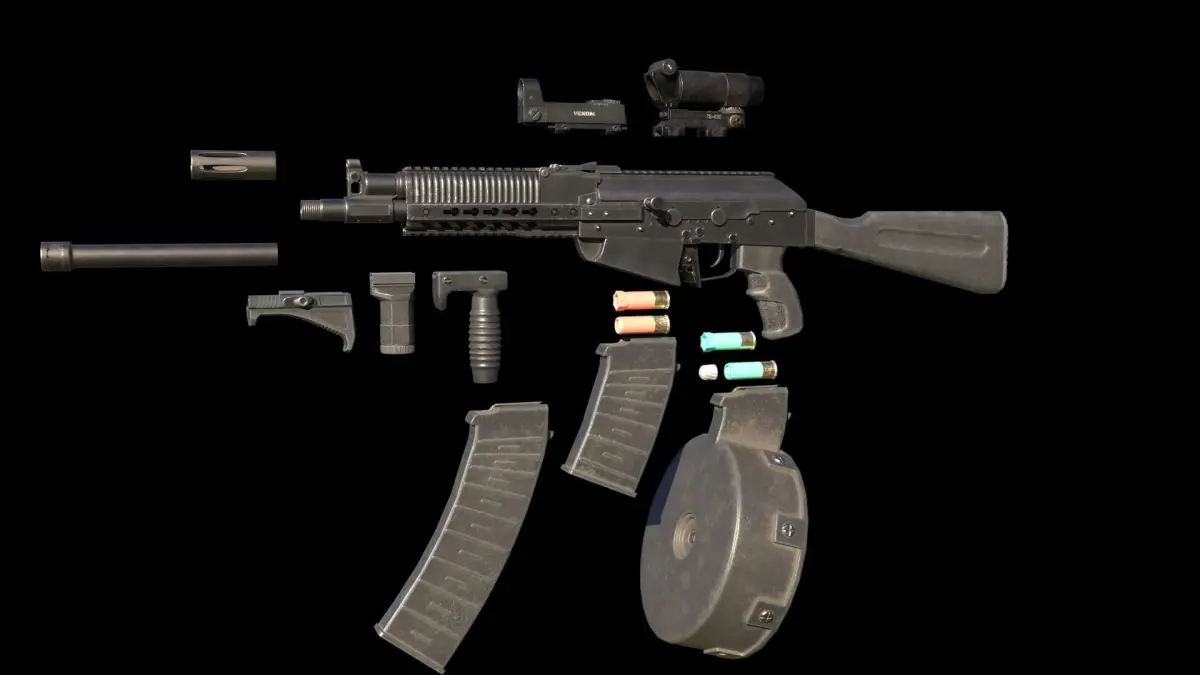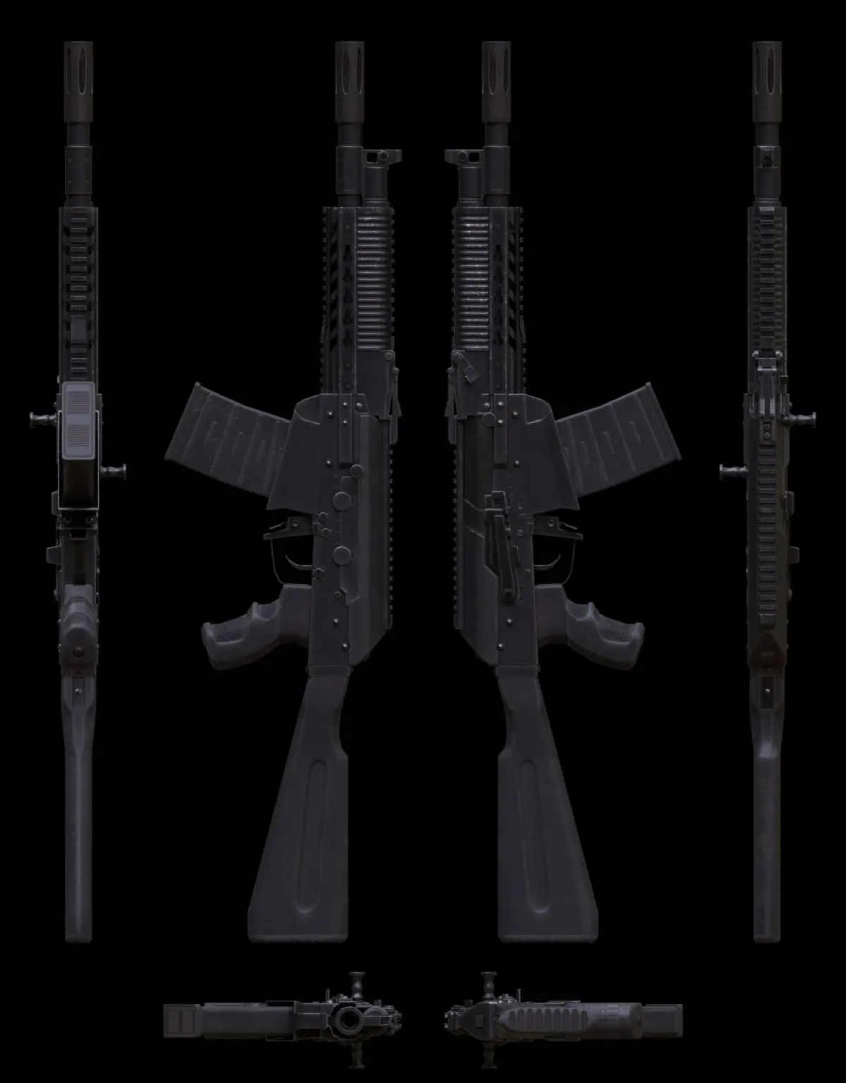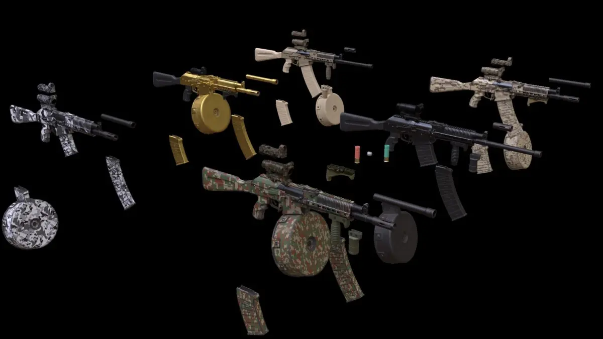 Blender (Default):Base_Color; Height; Metallic; Mixed_AO; Normal_Open_GL; Roughness. (BearClaw sight and Box Scope also contain Opacity and Emissive maps)