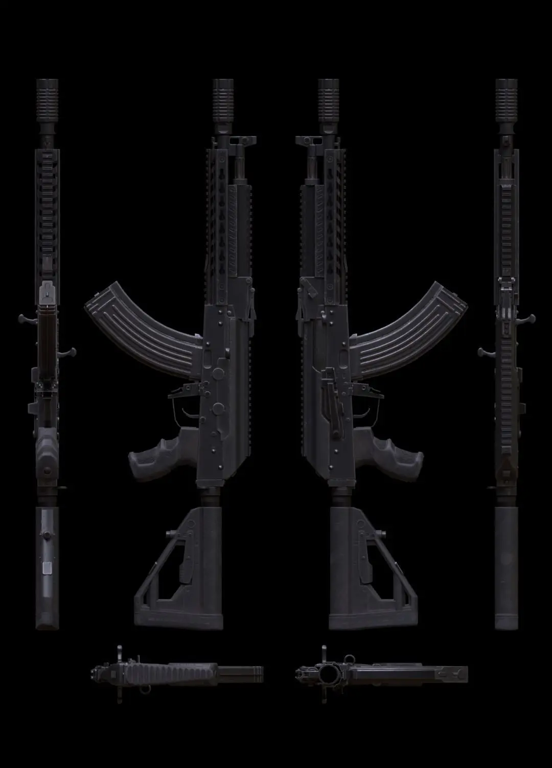 Blender (Default):Base_Color; Height; Metallic; Mixed_AO; Normal_Open_GL; Roughness. (BearClaw sight and Box Scope also contain Opacity and Emissive maps)