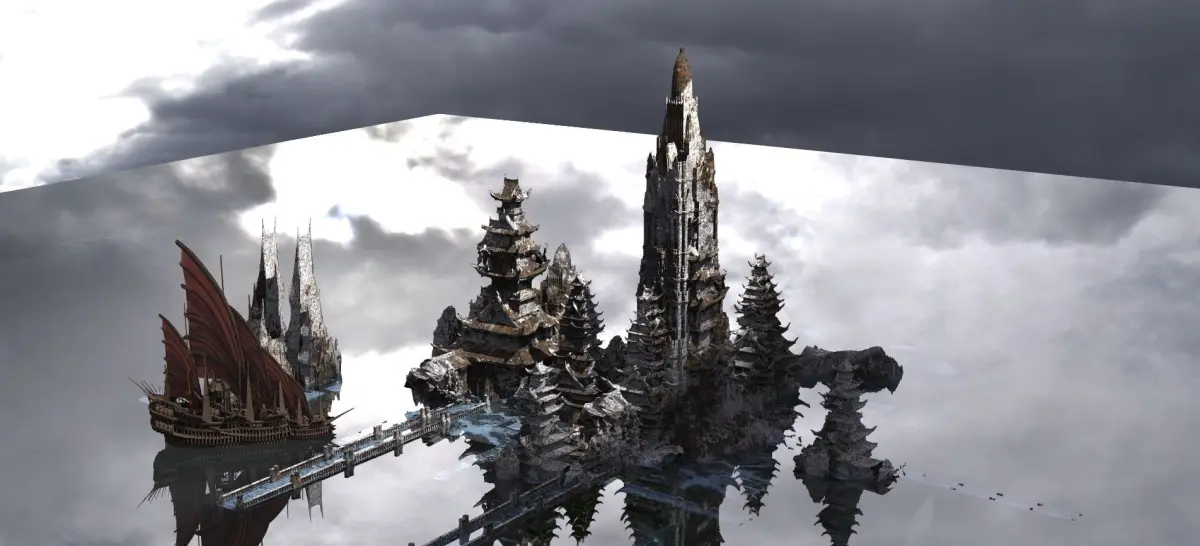 HomeCatalogAssassin Castle fortress with Huge Ships Kit bash 3D model