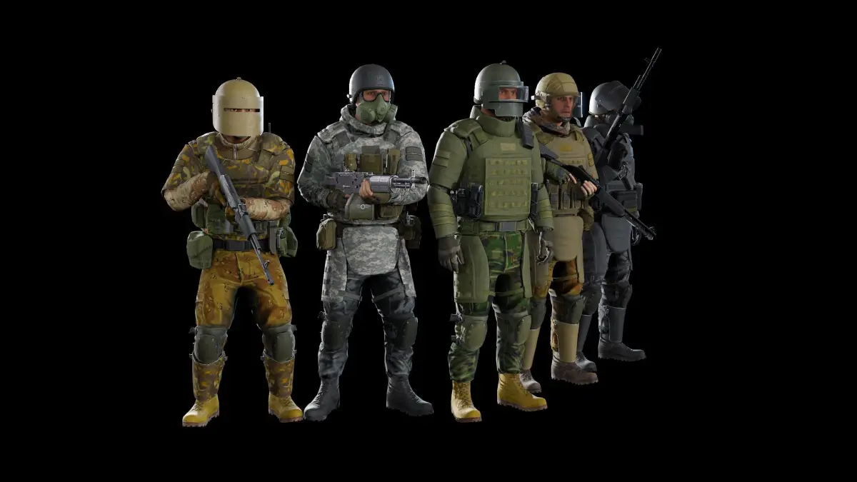 Vertex/Tris counts of characters: - Minimum modules: 13 762 / 19 160, Maximum: 22 410 / 30 398