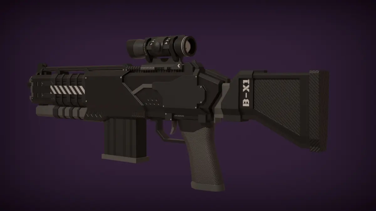 Múltiples Formatos Disponibles: El rifle está disponible en formato Blender, completo con configuraciones visuales como se ve en las imágenes de muestra, junto con formatos FBX y OBJ para compatibilidad con varios software.
