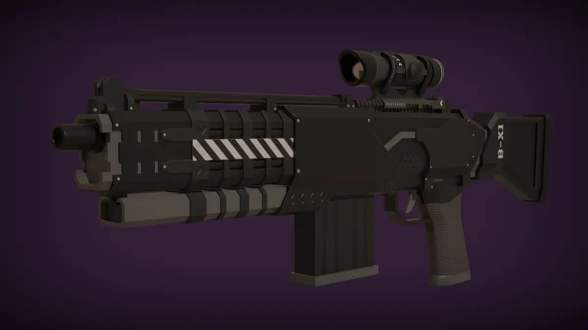 Multiple Formats Available: The rifle is available in Blender format, complete with visual settings as seen in the sample images, along with FBX and OBJ formats for compatibility with various software.