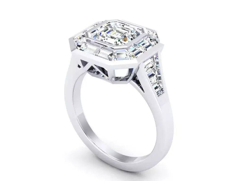 Home Catalog Asscher Cut Diamond Solitaire With Baguette 3D print model