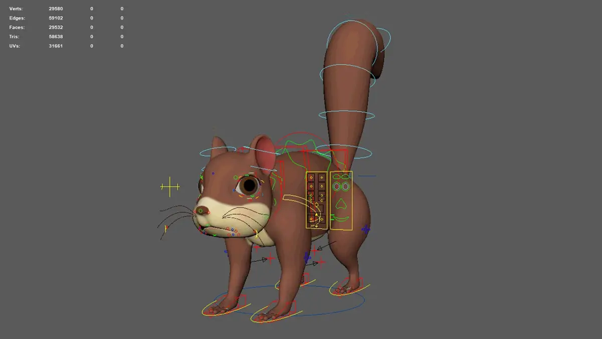 -3d model of Cartoons Squirel Rig. -This 3D model is best for use in games,cartoon. -Model is built with great attention to details and realistic proportions with correct geometry. -Textures are very detailed so it makes this model good enough for close-up.