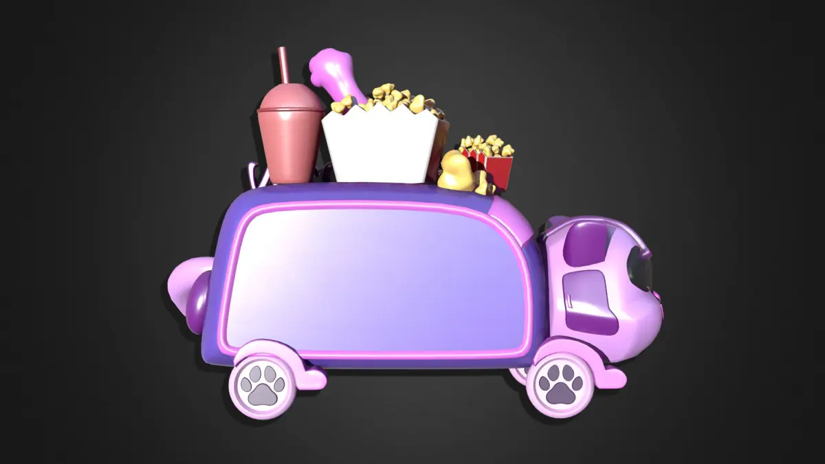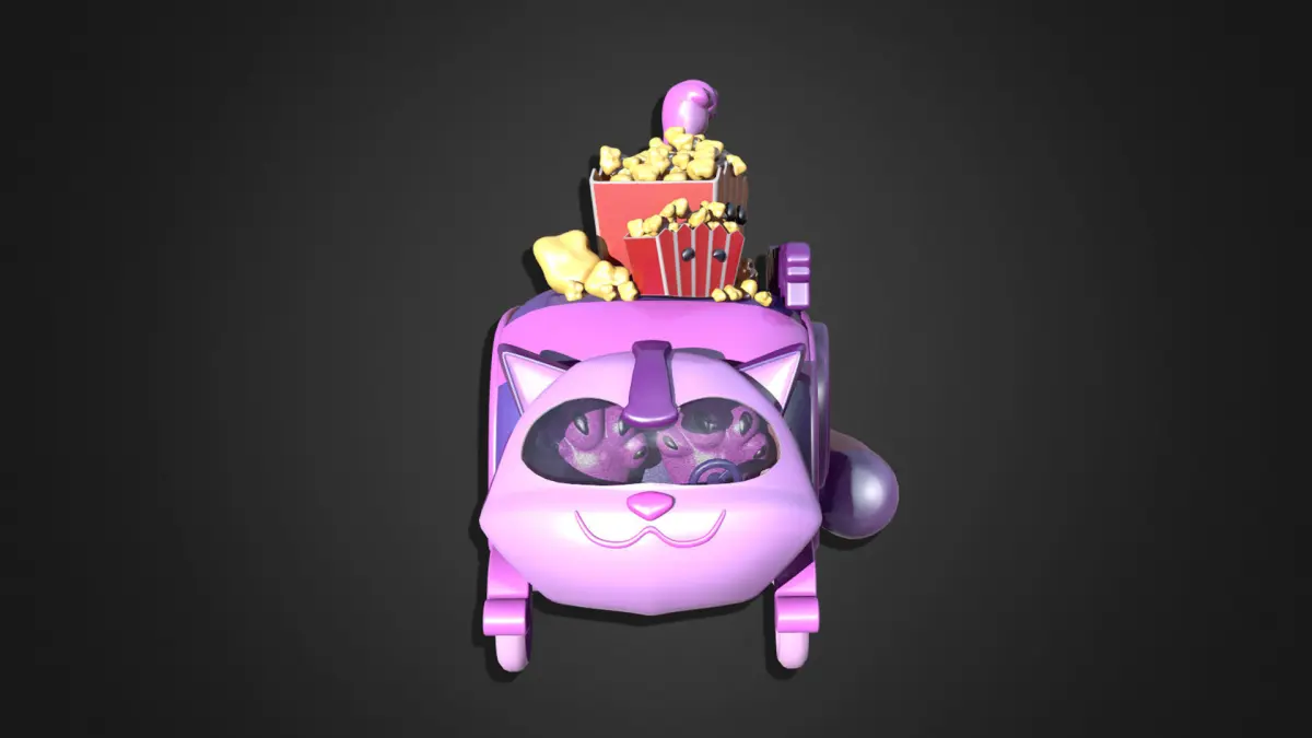 Asset - Cartoons - Food Car - Popcorn Cat Cart 3D model